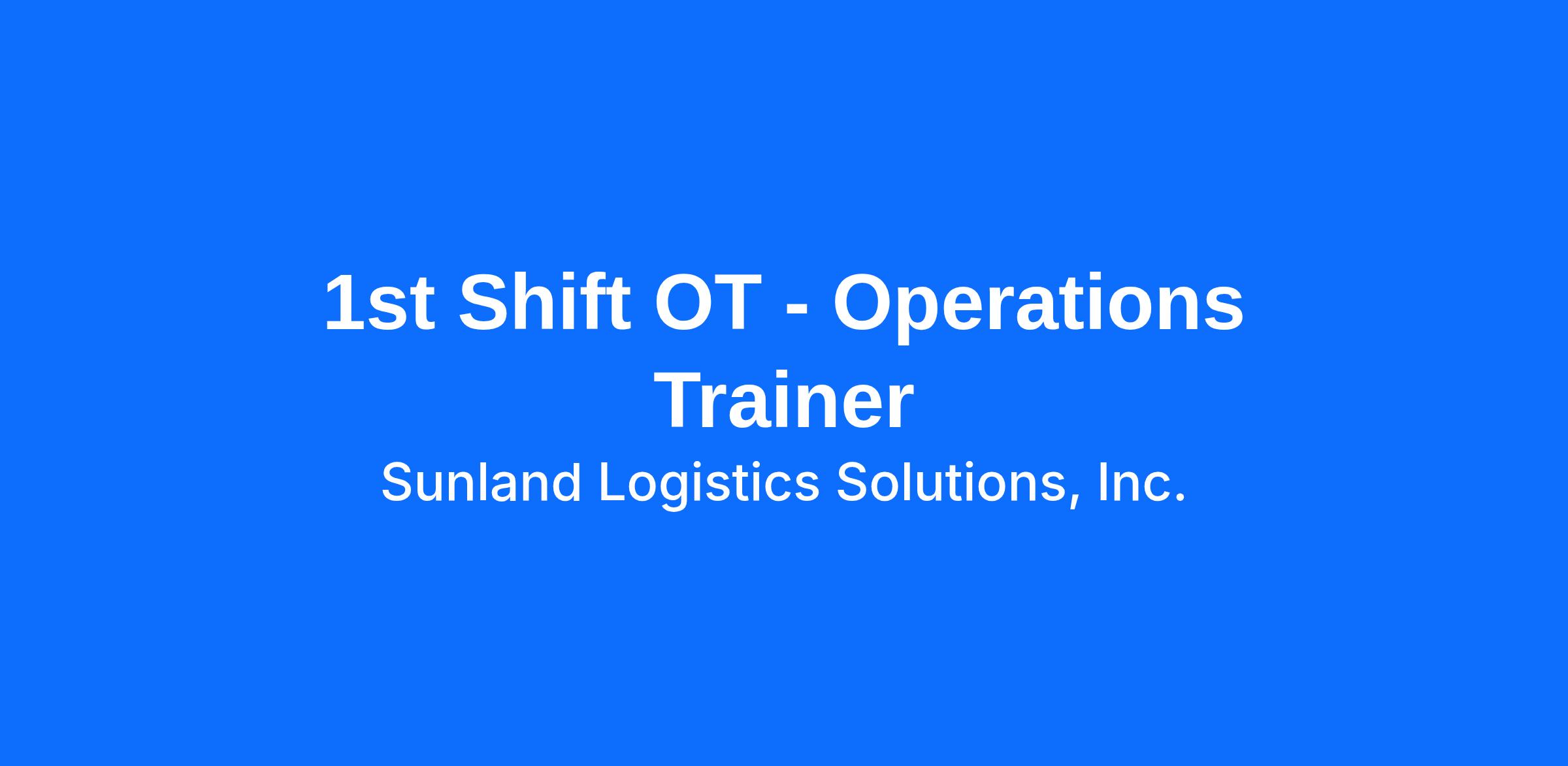 The Training Coordinator is responsible for providing process flow knowledge and operational excellence for Sunland Logistics Solutions, Inc. customers by utilizing highly, in depth knowledge of customer products, procedures and processes in a Safe working environment.