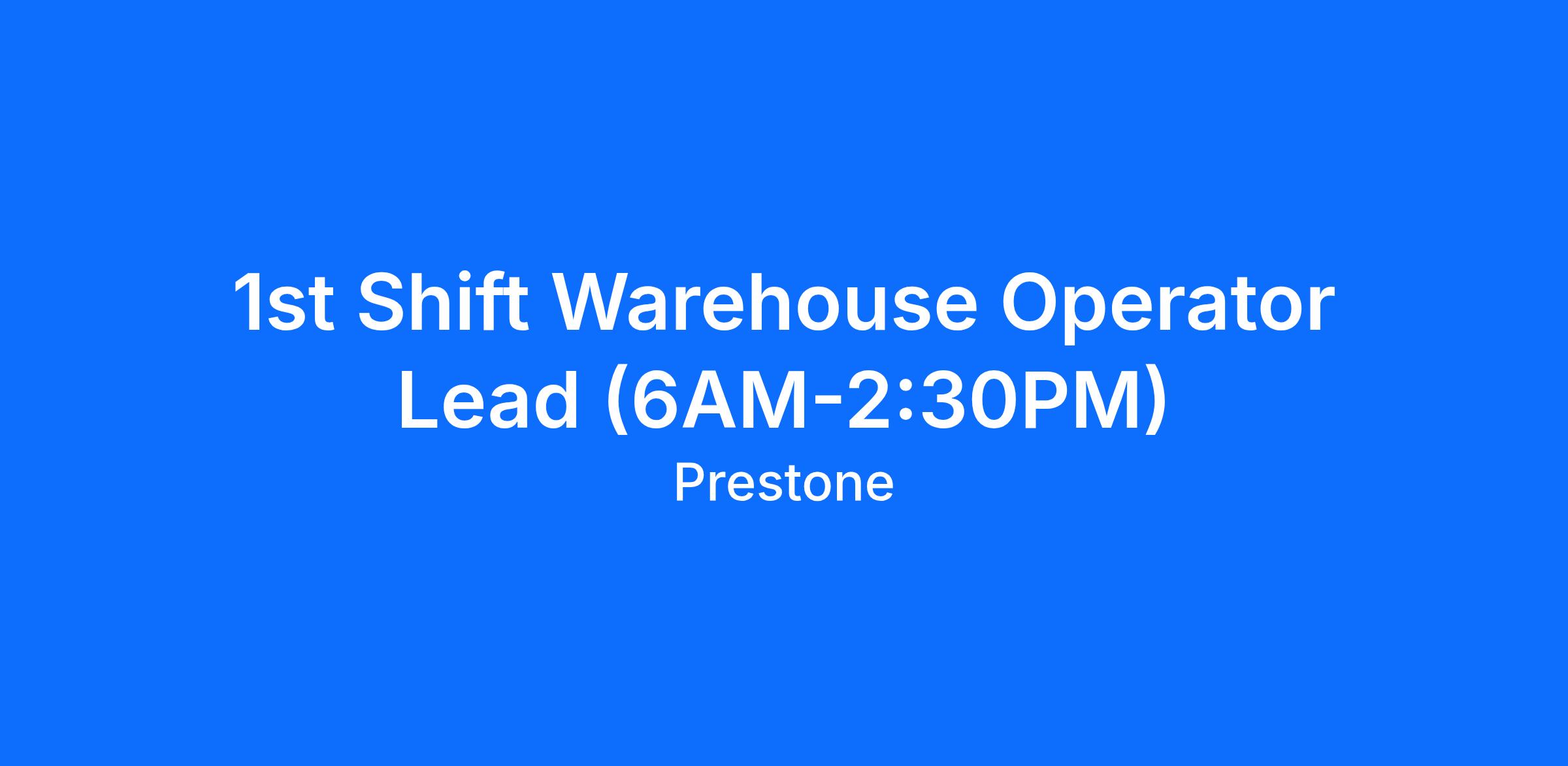 Prestone is looking for a 1st Shift Lead Warehouse Operator to join our team! We are looking for a self-motivated, professional, and organized individual who enjoys detailed work and a fast-paced environment.
