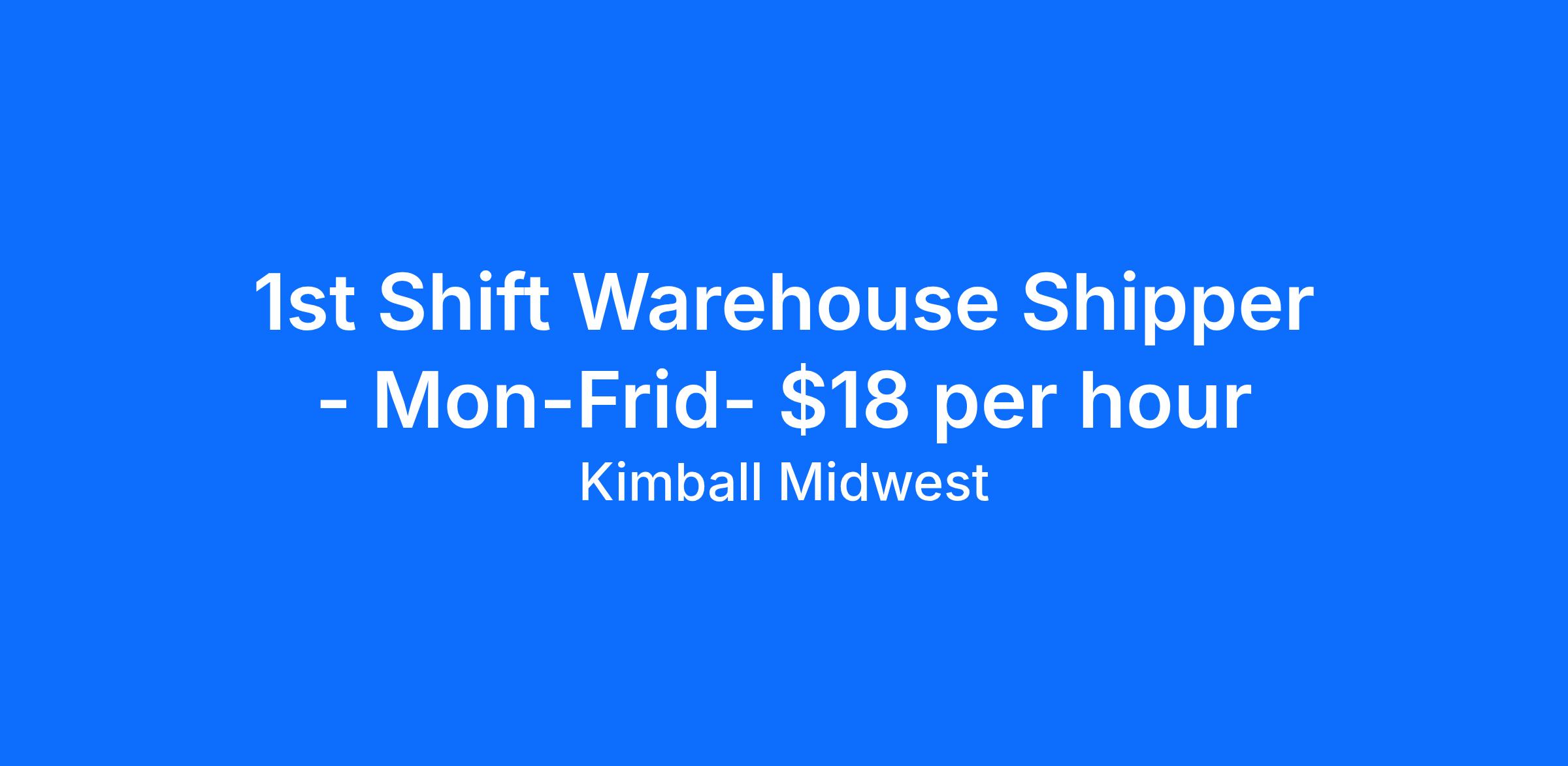 Kimball Midwest, a national distributor of maintenance, repair, and operation products, is searching for a 1st Shift Shipper for our Savannah, GA location.