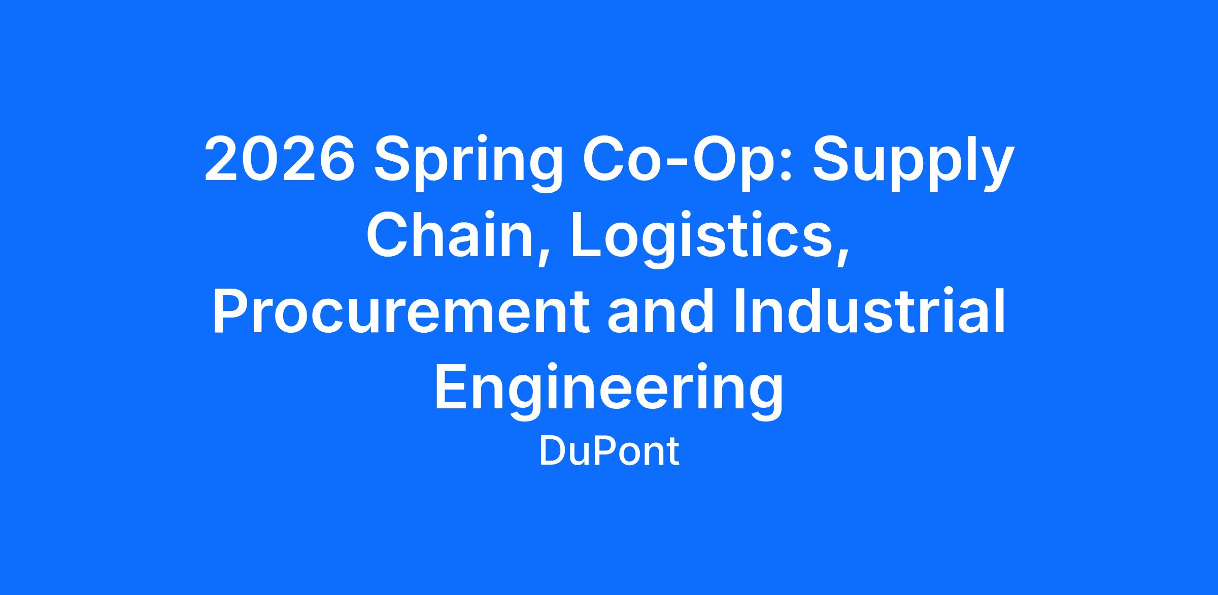 Our program offers students impactful roles that foster growth while advancing DuPont’s operations through best-in-class procurement, strategic sourcing, and optimized distribution. Examples of roles include Asset Scheduling, Distribution Requirements Planning, Material Planning, Demand Coordination, Business Processes, and Procurement Process Improvements.