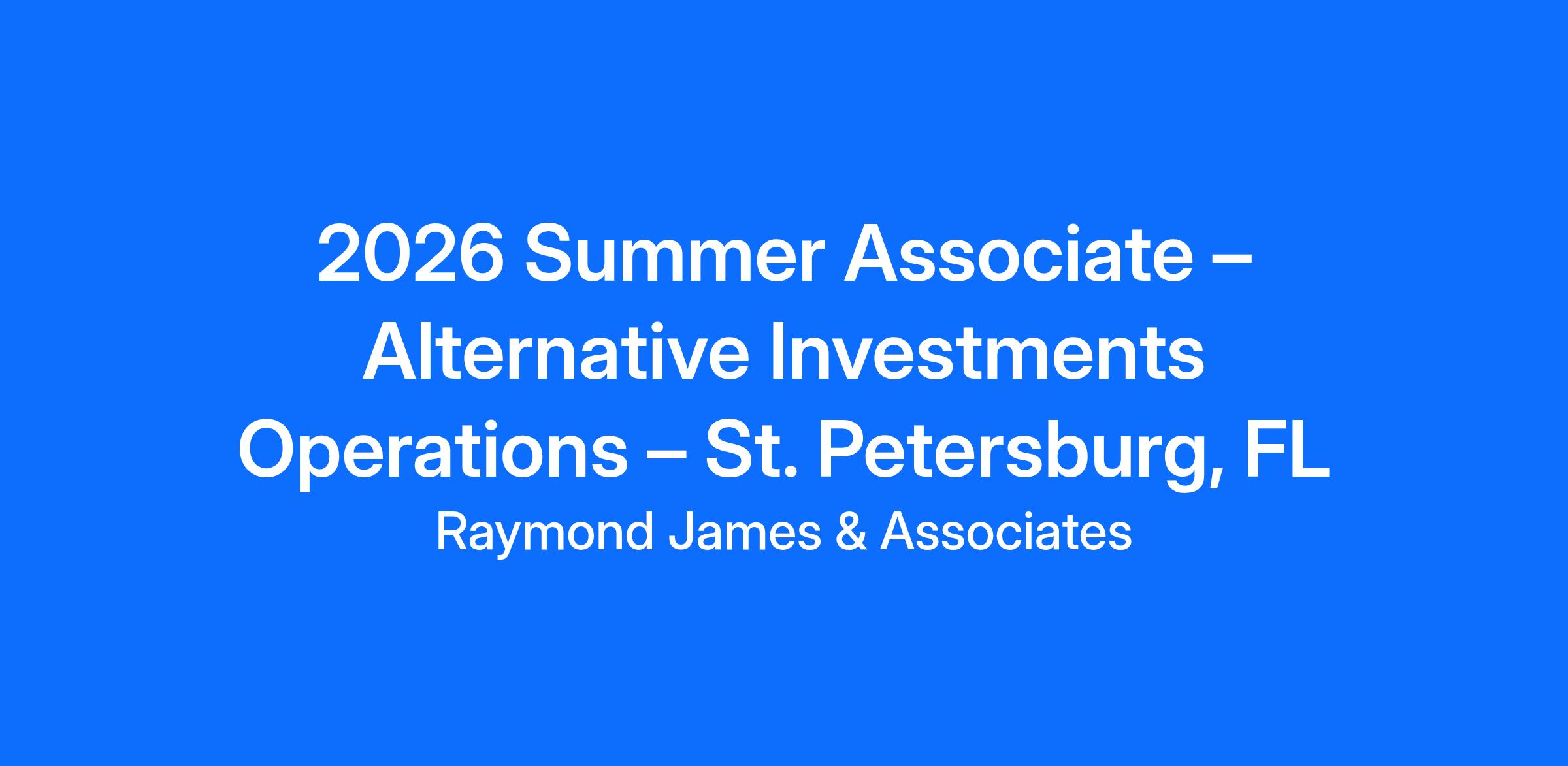 We strive to ensure everyone feels welcomed, valued, respected, and heard so that you can fully contribute your unique talents for the benefit of clients, your career, our firm, and our communities. Raymond James is an equal opportunity employer and makes all employment decisions on the basis of merit and business needs.