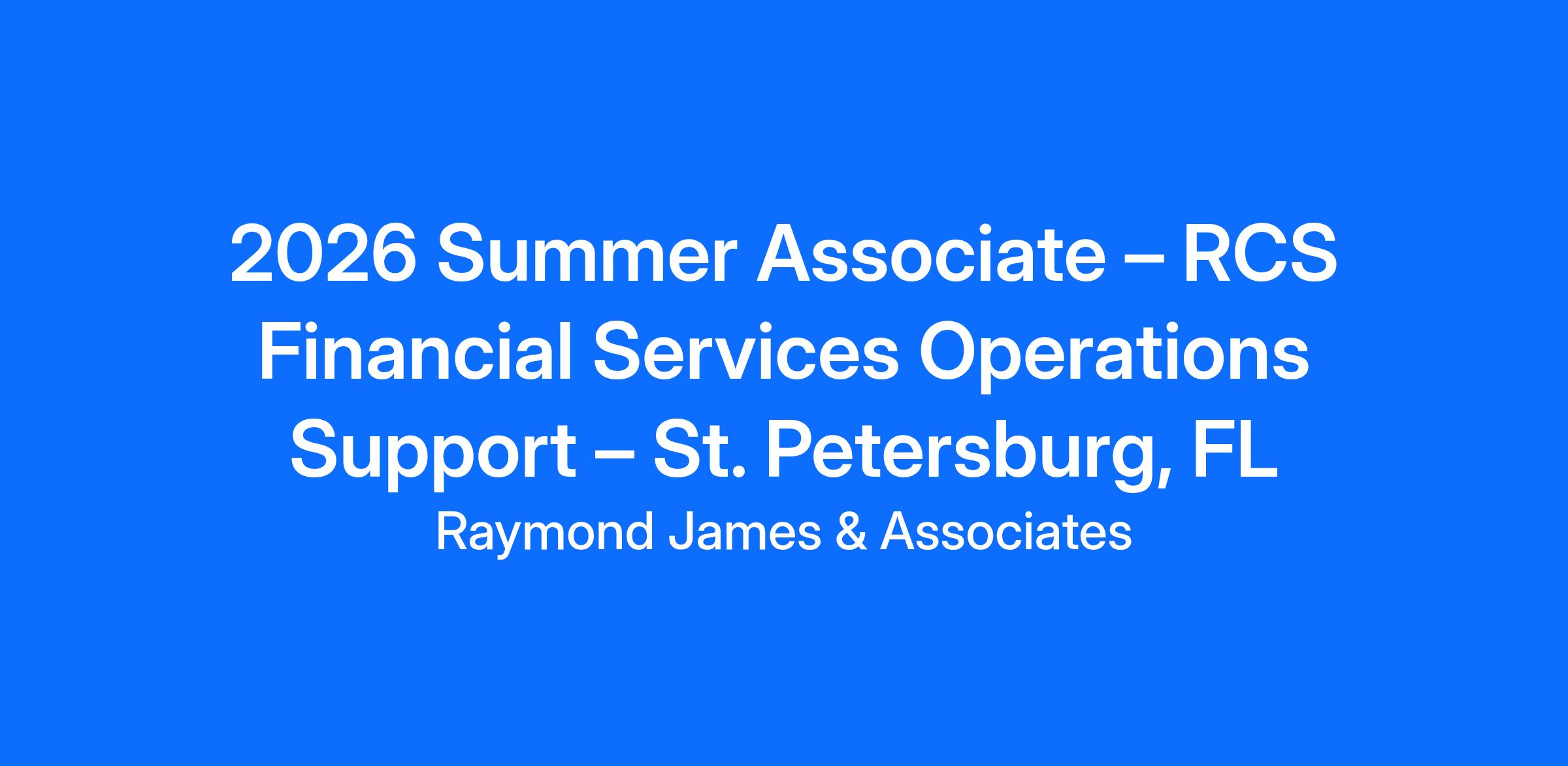 We strive to ensure everyone feels welcomed, valued, respected, and heard so that you can fully contribute your unique talents for the benefit of clients, your career, our firm, and our communities. Raymond James is an equal opportunity employer and makes all employment decisions on the basis of merit and business needs.