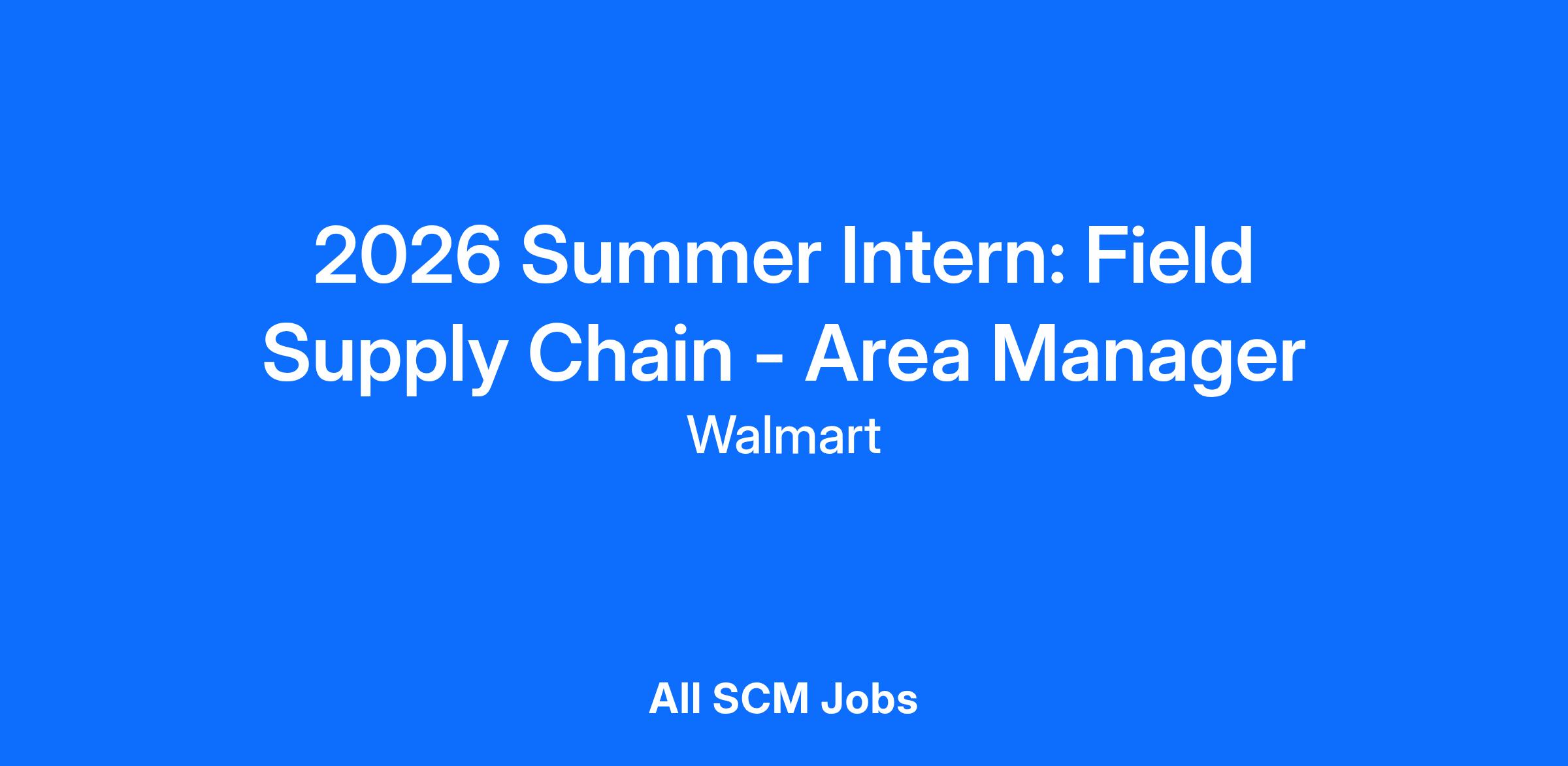 2026 Summer Intern: Supply Chain - Area Manager (Field)