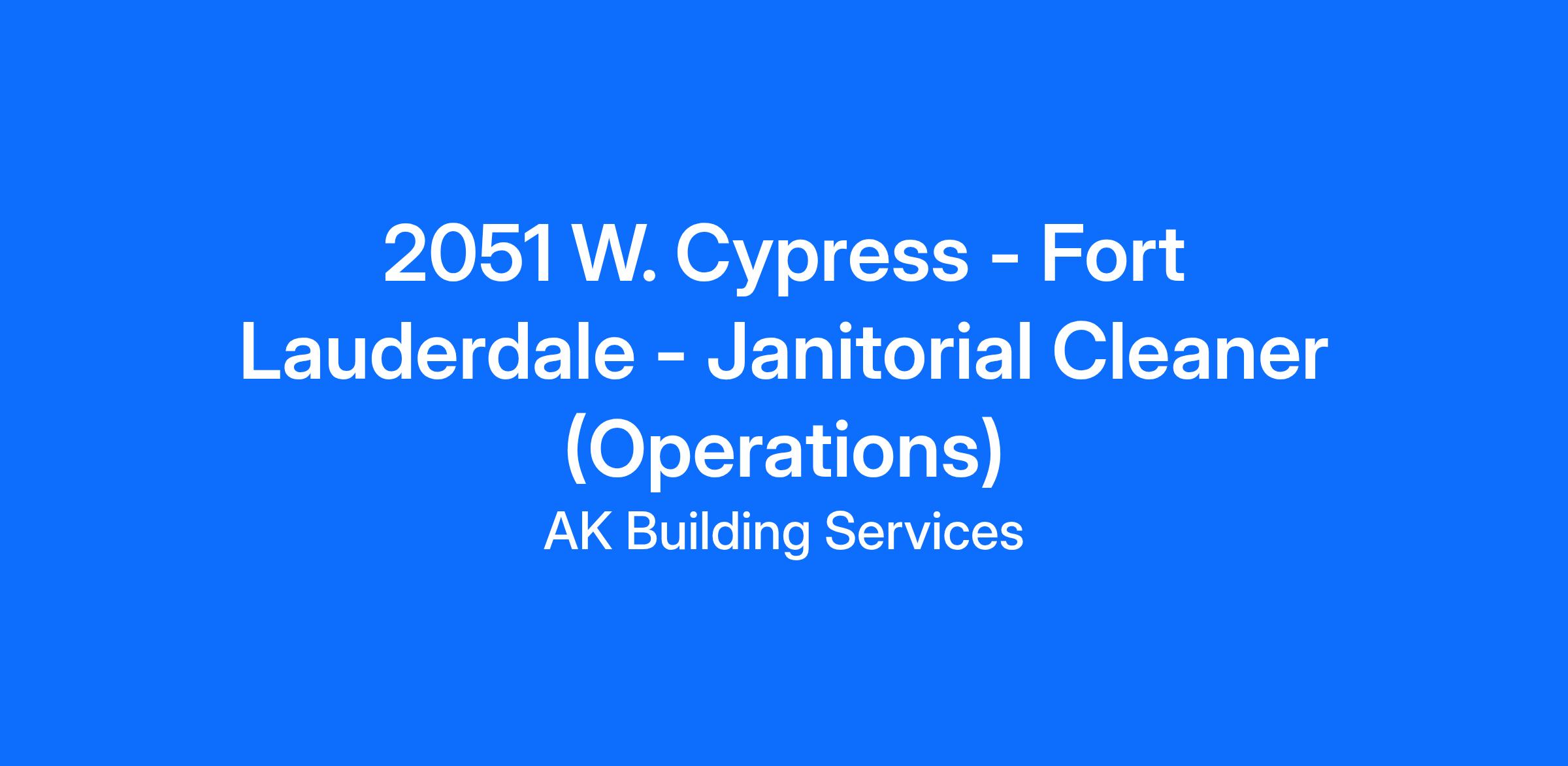 Una empresa de limpieza establecida necesita personas confiables para los puestos de limpieza a tiempo parcial disponibles en Fort Lauderdale. Los solicitantes deben tener documentos que les permitan trabajar en los EE. UU. Y la capacidad de aprobar una verificación de antecedentes.