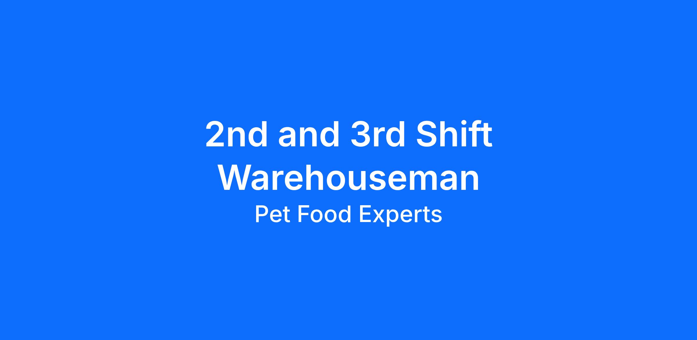 Our Warehouse Teams accurately replenish product or fulfill customer orders by selecting, moving and loading products (e.g. bags of dog/cat food, cases of cans, litter) from warehousing racks and storage areas onto pallets both manually and using warehouse equipment.
