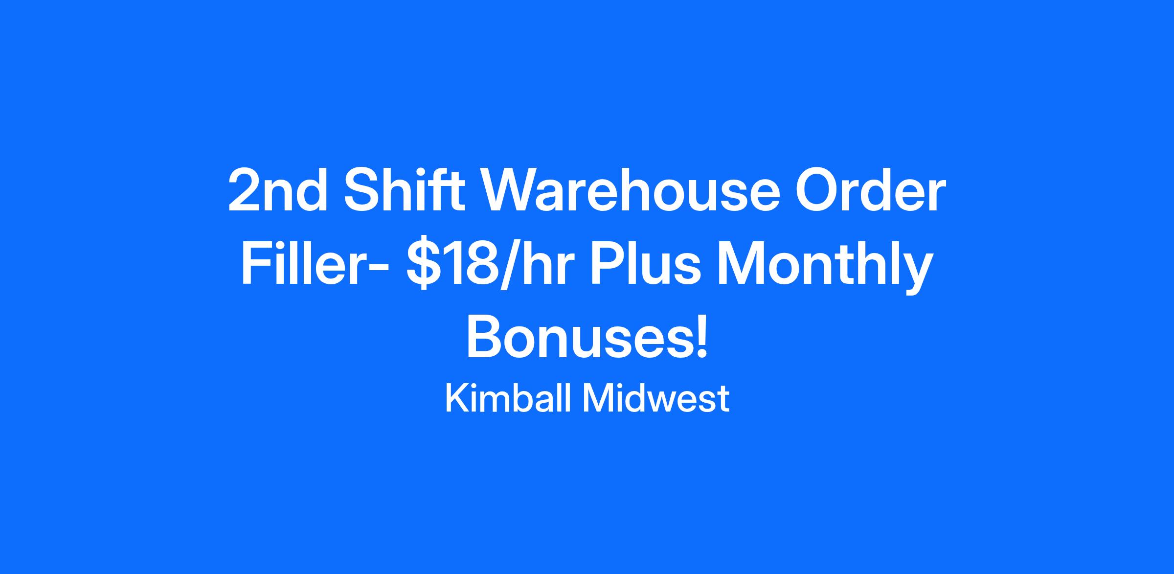 Kimball Midwest, an industrial distribution center, is looking for a 1st Shift Order Filler to work full time in our Sparks, NV distribution center.