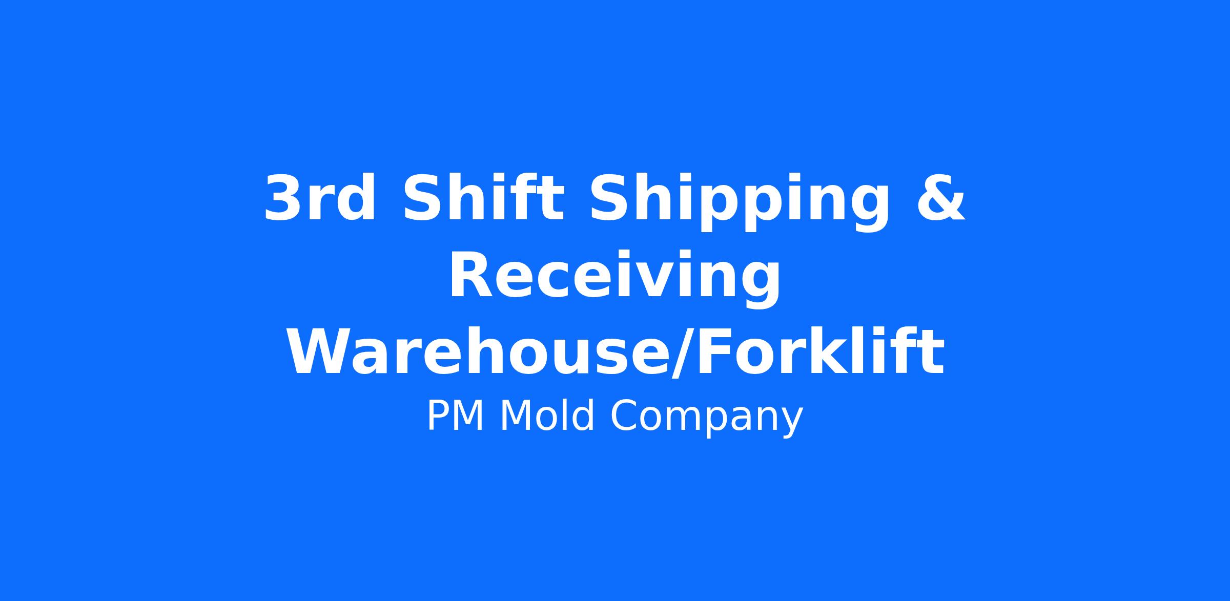 PM Mold is seeking a Shipping & Receiving Warehouse Associate to help us take our Warehouse the next level. This is a unique opportunity to directly impact our growing company. Under the direction of the shift Supervisor, the top candidate will thrive in a fast-paced environment, while maintaining quality and safety standards. We'd love to hear from you if this is your passion and expertise!