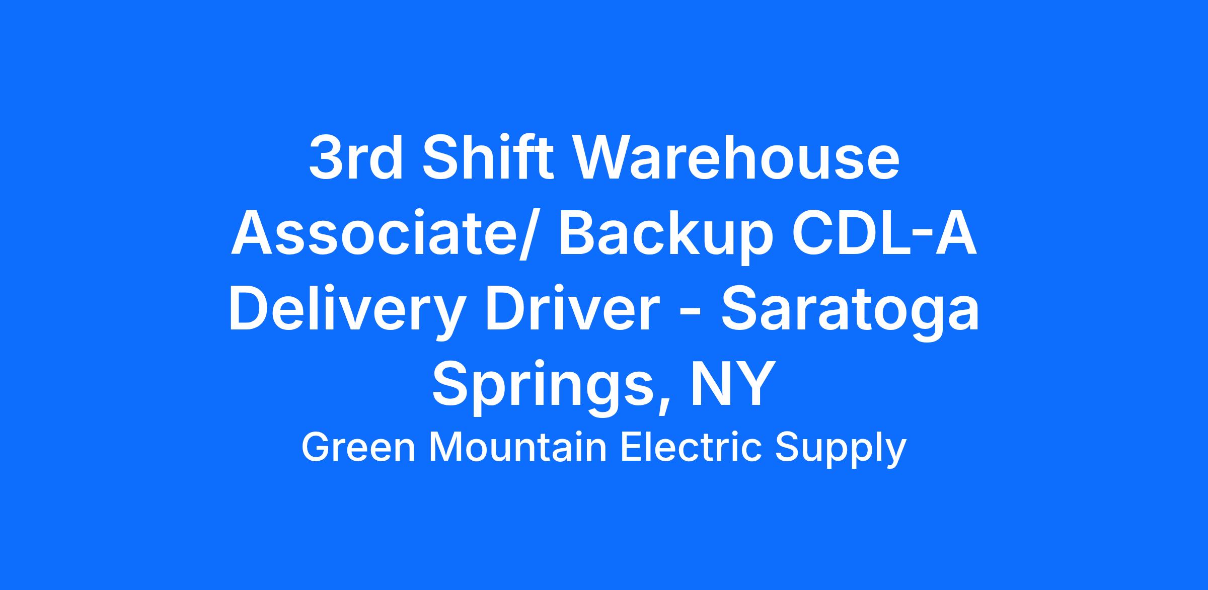 We are now hiring for a Full-Time 3rd Shift Warehouse Associate/Backup CDL-A Delivery Driver for our rapidly expanding Electrical Supplies business. This position will be located at our Saratoga Springs, NY branch.