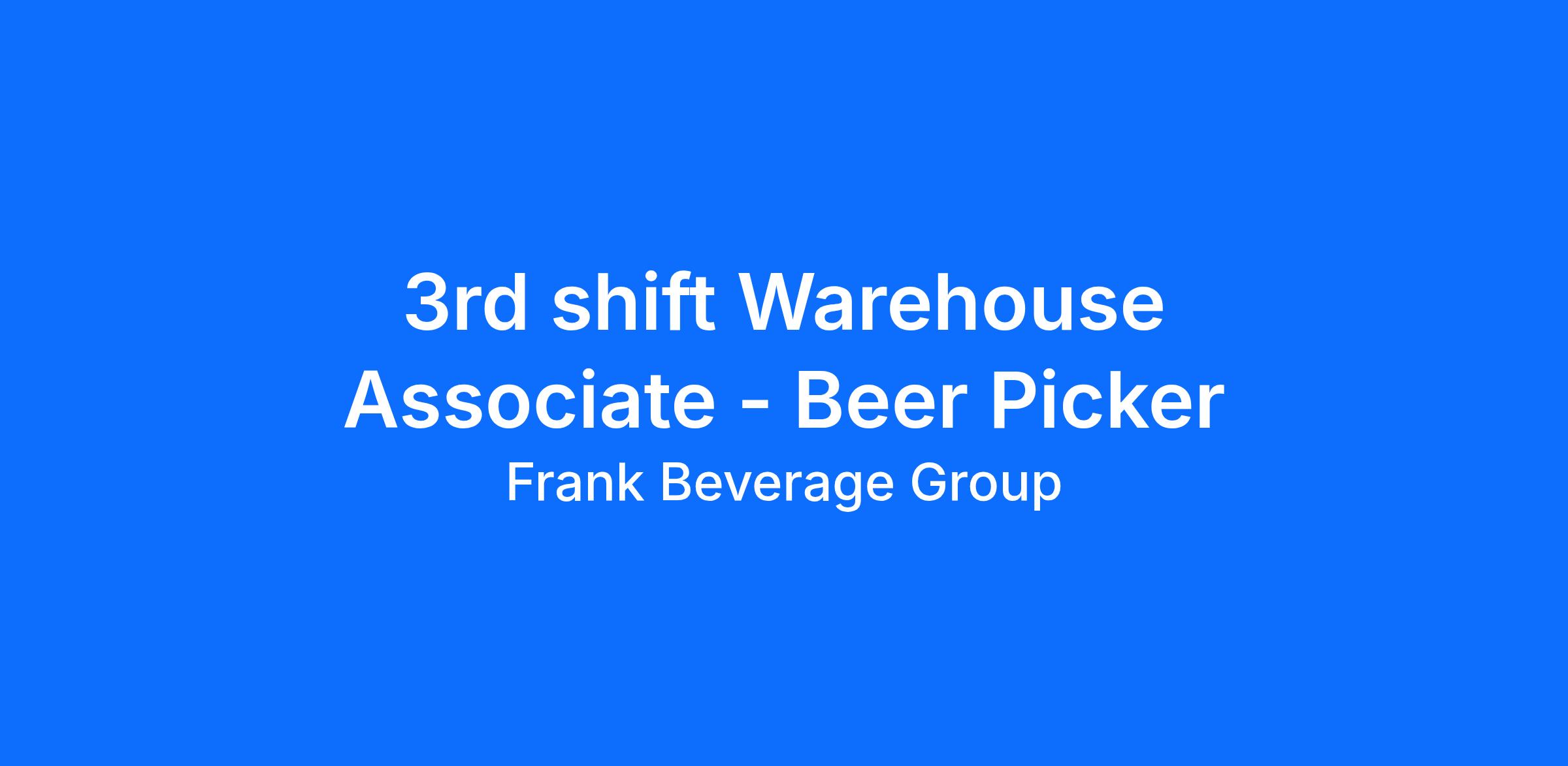 The Warehouse Associate – Beer Picker is responsible for accurately selecting and building customer orders in a fast-paced warehouse environment. This position ensures product accuracy, maintains warehouse organization, follows safety standards, and supports overall operational efficiency to meet customer delivery timelines.
