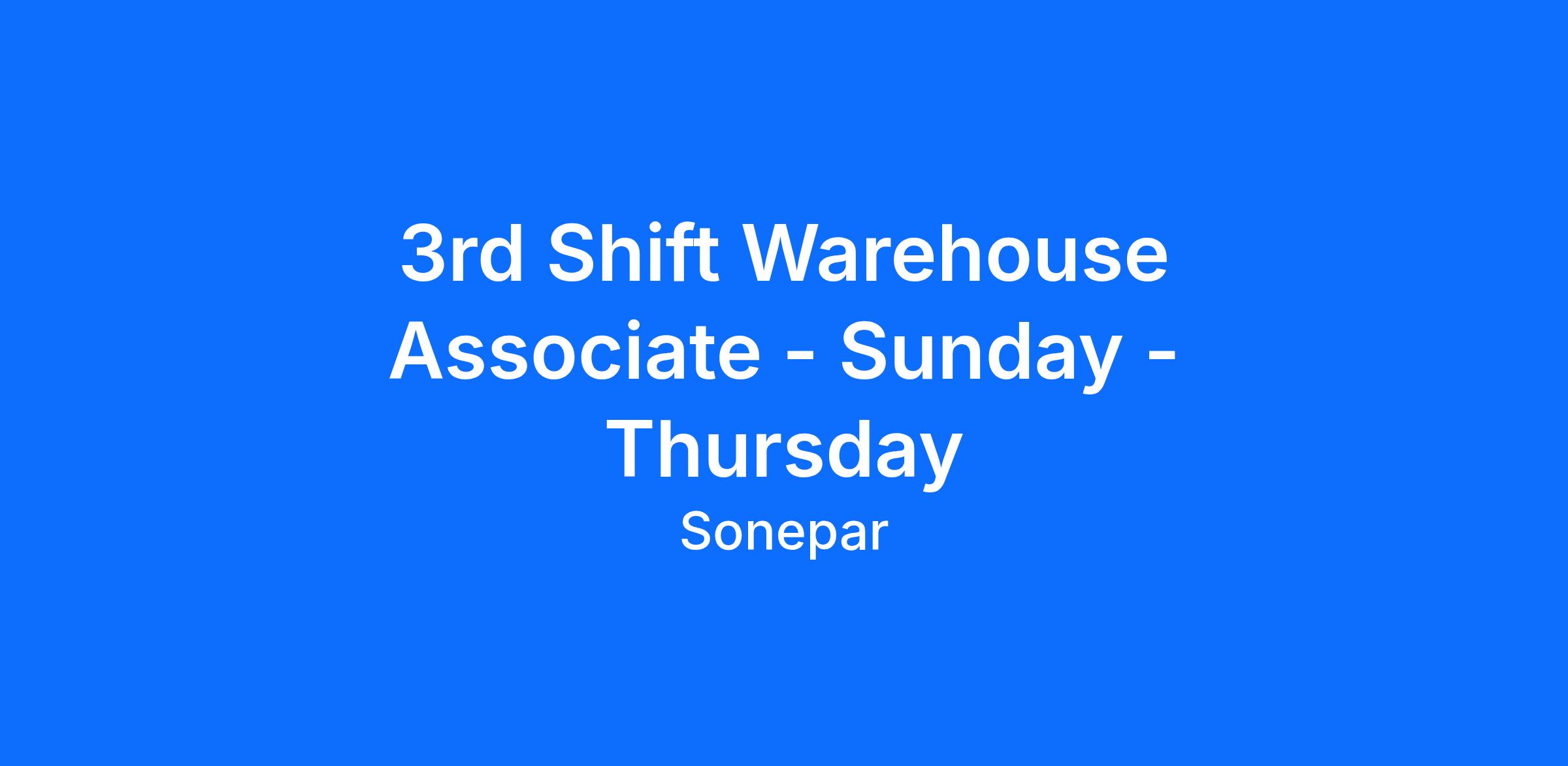 Schedule: 9pm-5am, Sunday - Thursday (third shift)