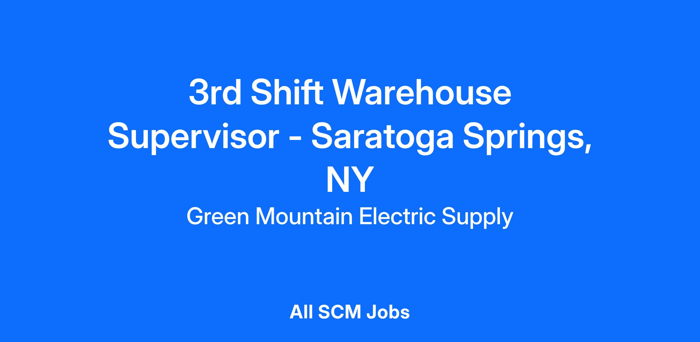 We are now hiring for a Full-Time 3nd Shift Warehouse Supervisor for our rapidly expanding Electrical Supplies business. This position will be located at our Saratoga Springs, NY branch.