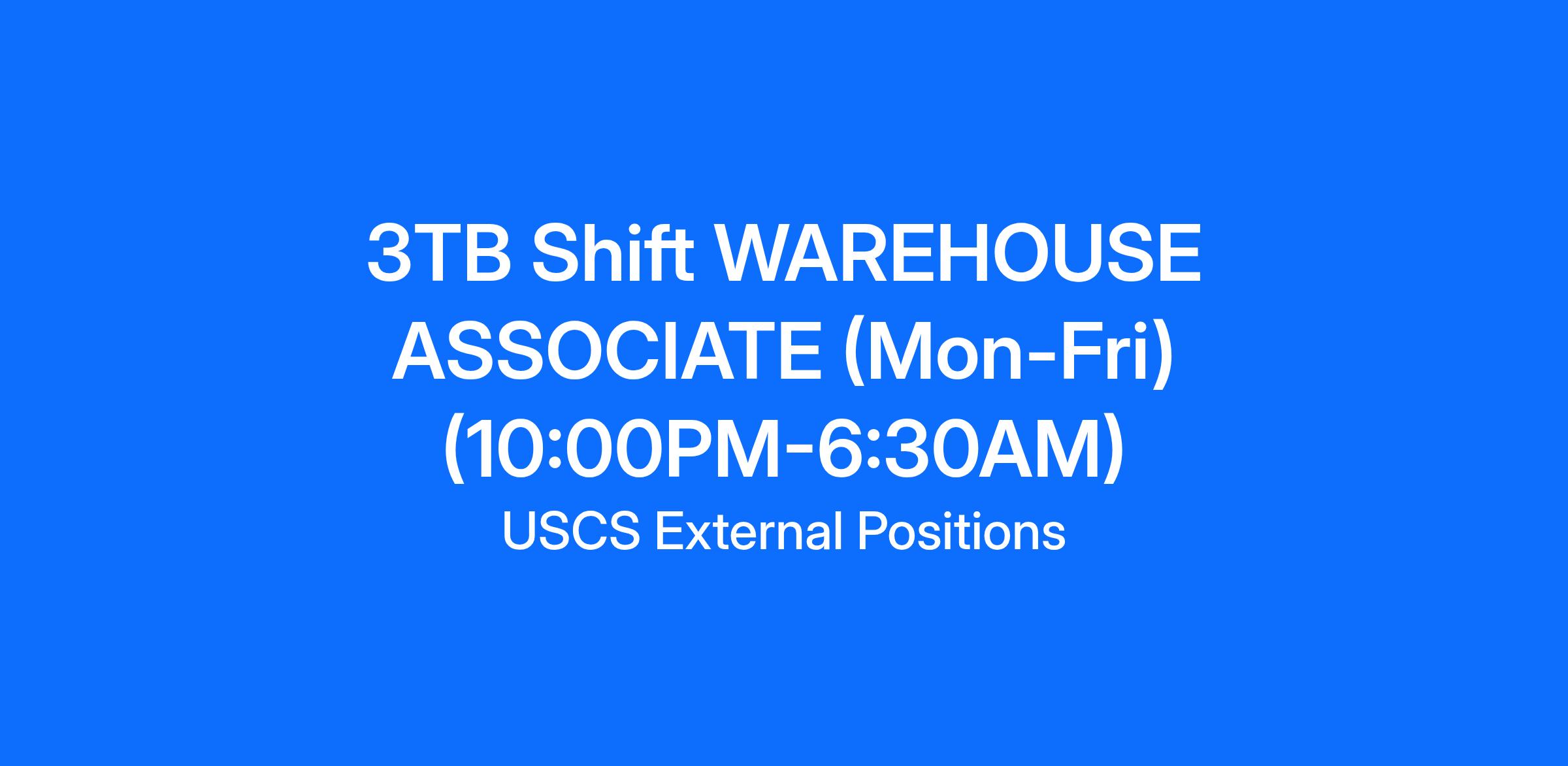 3B Shift: Monday-Friday 10:00PM-6:30AM