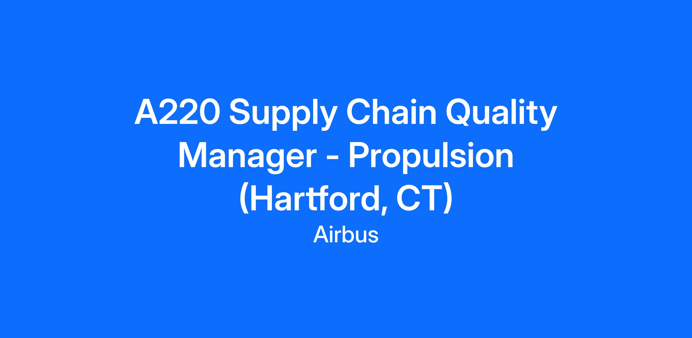Airbus Commercial Aircraft is looking for a Supply Chain Quality Manager - Propulsion to join our Procurement department in Hartford, CT.
