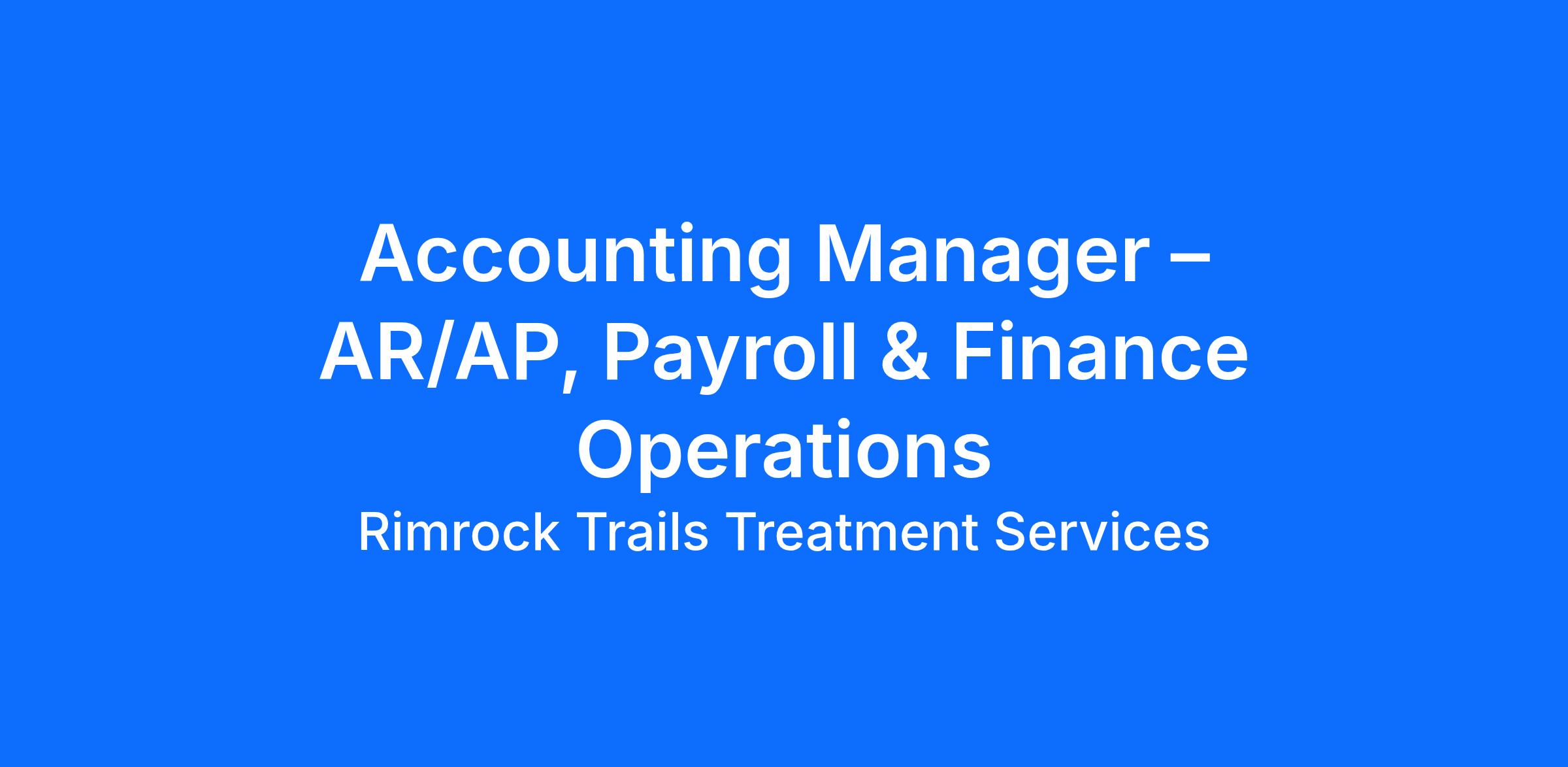 The Accounting Manager plays a key role in supporting the financial operations of Rimrock Trails Treatment Services. Reporting directly to the Finance Director, this position oversees core accounting and financial administration functions including accounts receivable, accounts payable, payroll processing, and financial record maintenance.