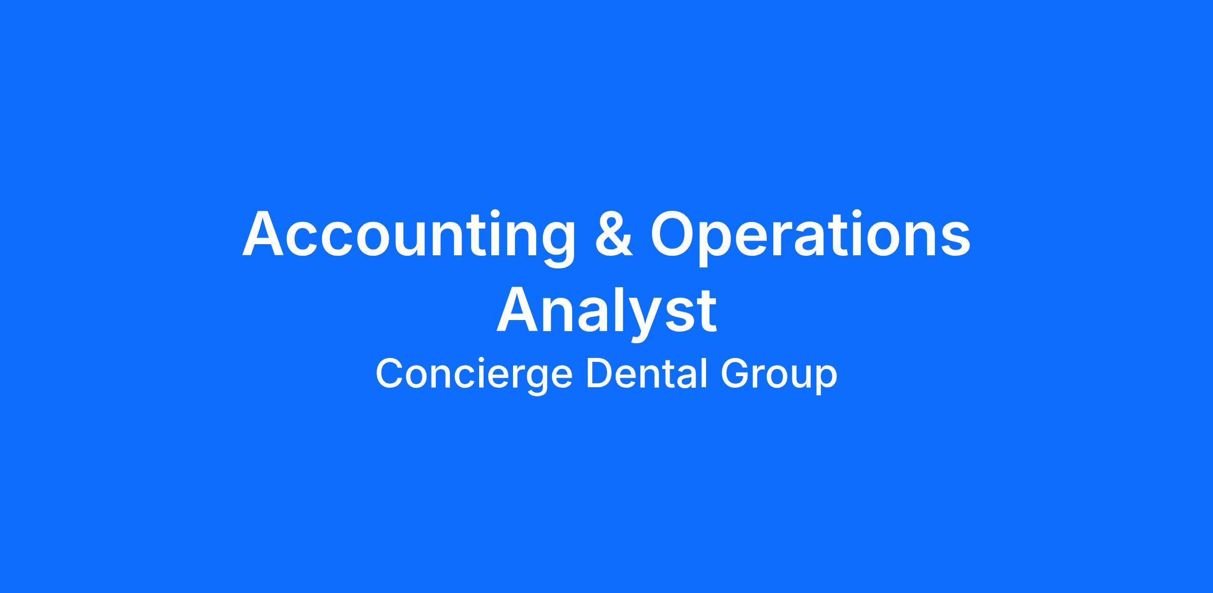 Concierge Dental Group is at a pivotal stage of growth, and this role offers a unique opportunity to join the organization at a critical moment. The Accounting & Operations Analyst will play a key role in stabilizing and strengthening the financial foundation of a rapidly expanding dental group, while directly