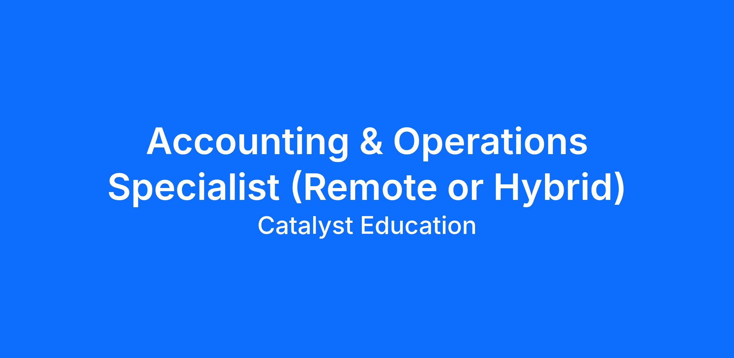 Accounting & Operations Specialist – Catalyst Education