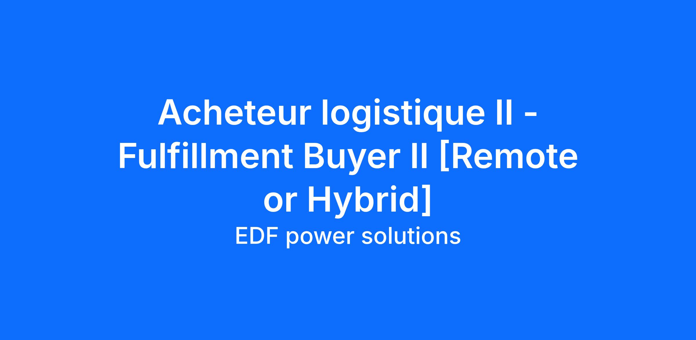 Acheteur logistique II - Fulfillment Buyer II [Remote or Hybrid]