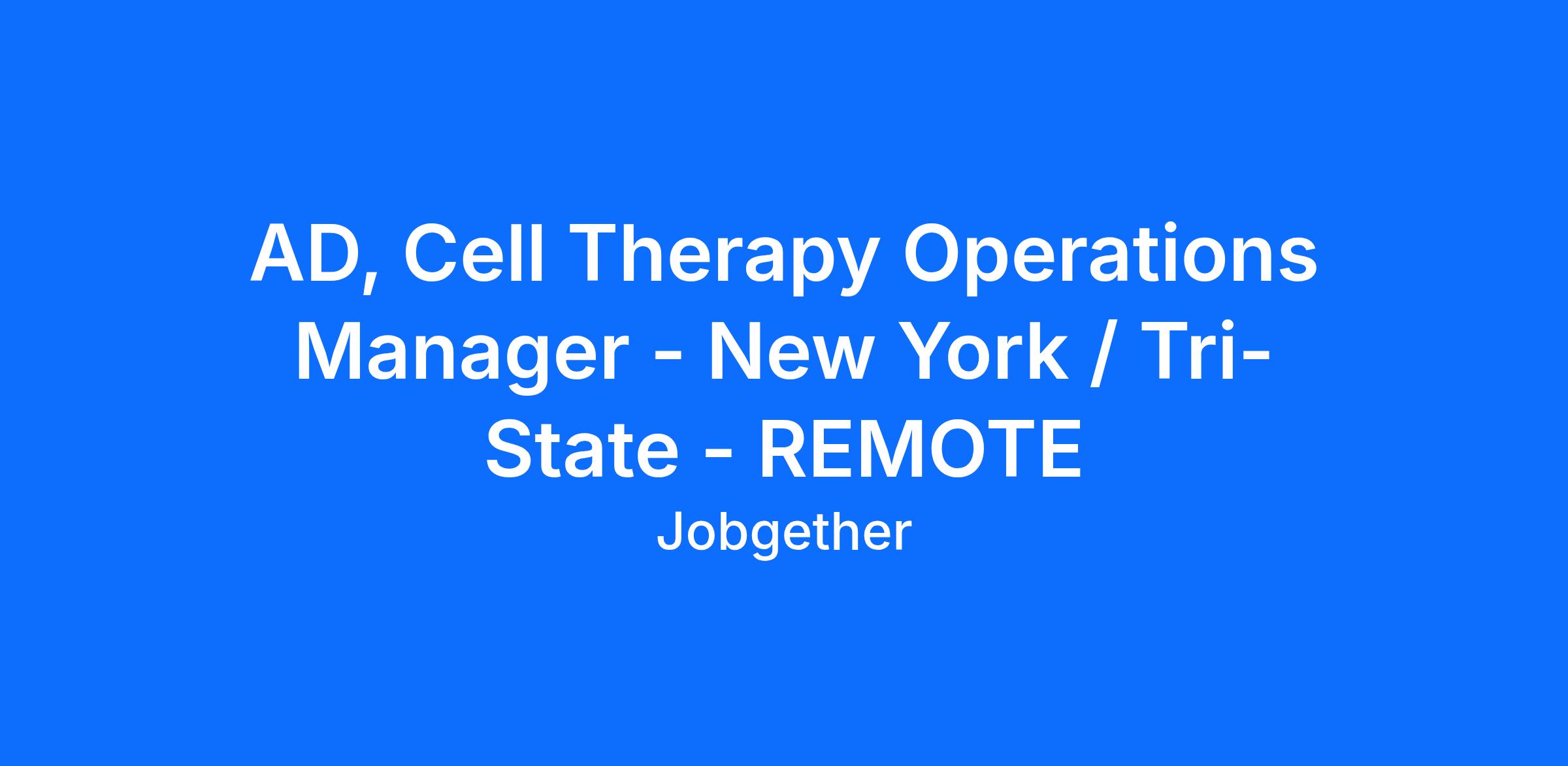 AD, Cell Therapy Operations Manager - New York / Tri-State - REMOTE