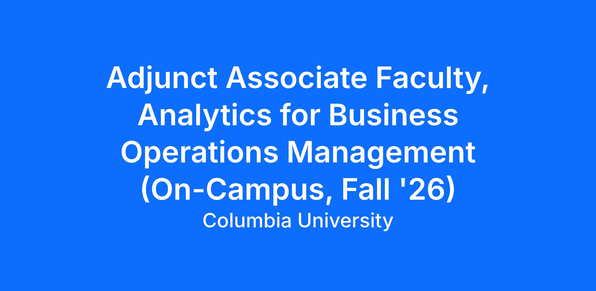 level course in Analytics for Business Operations Management. An Associate is a faculty line junior to a