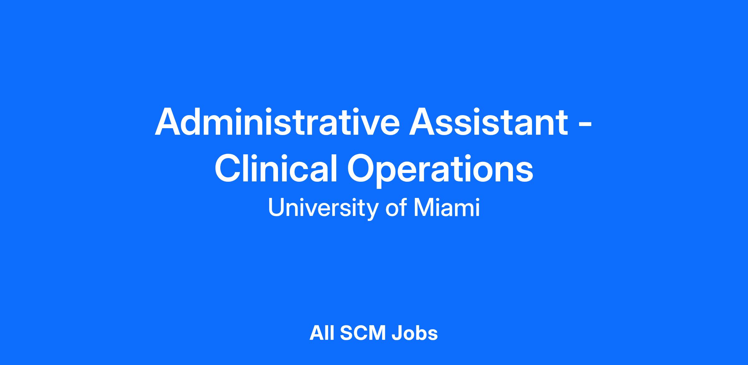 The University of Miami/UHealth Department of SCCC has an exciting opportunity for a Full Time Administrative Assistant to work at the UHealth campus in Miami, Fl.