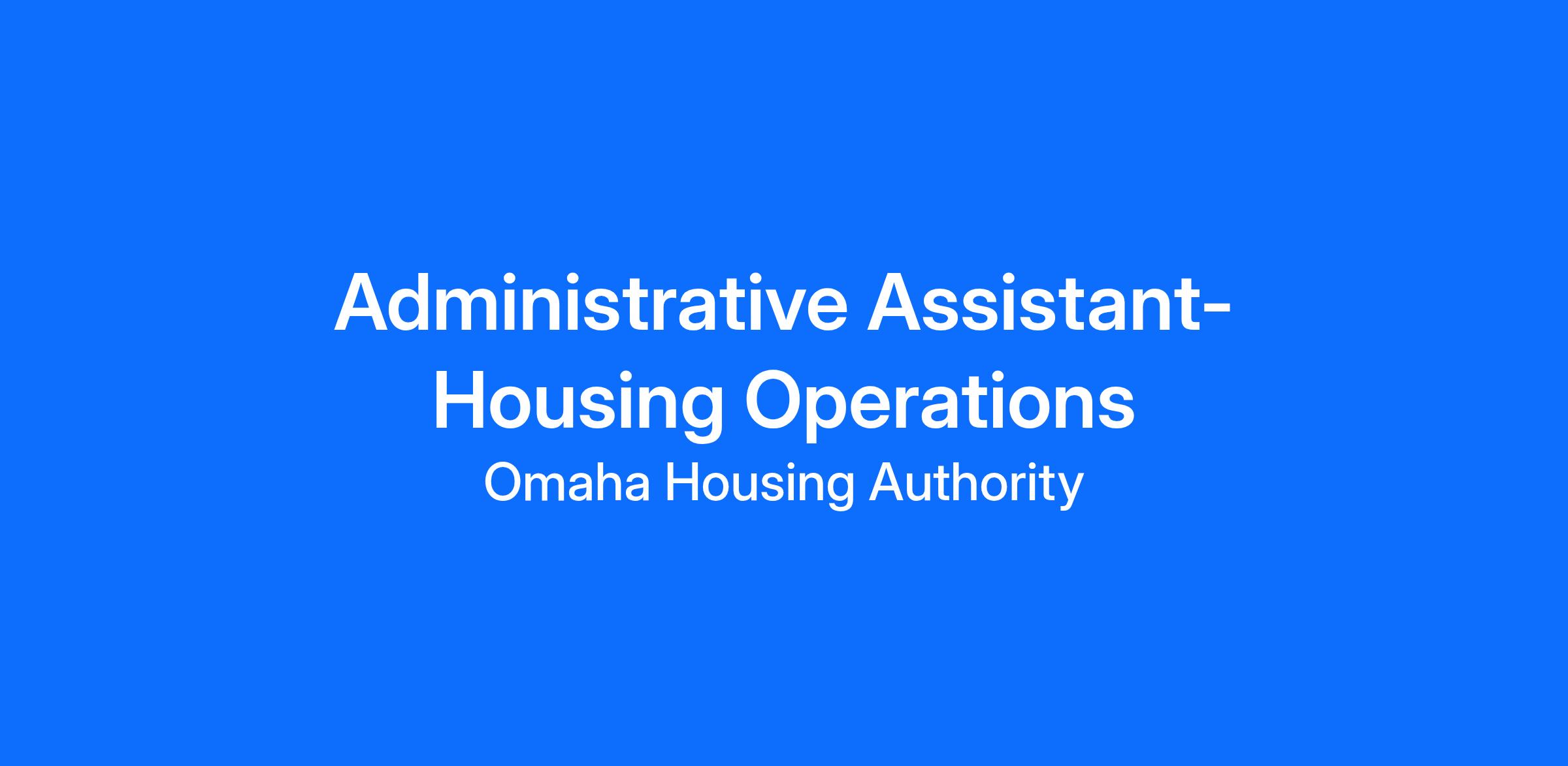 The Administrative Assistant provides administrative support and customer service related to the Housing Operations.