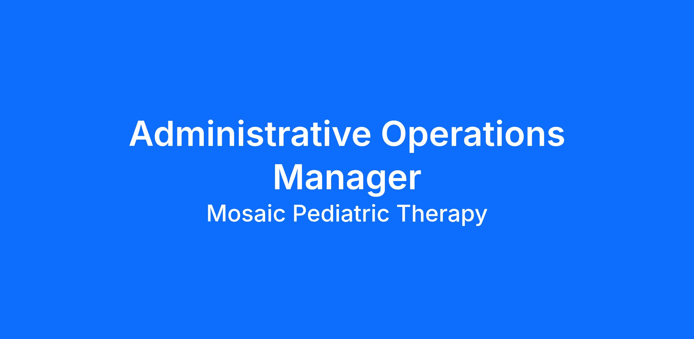 Mosaic Pediatric Therapy has an opening for an Administrative Operations Manager to support our Bon Air, VA clinic. The AOM is responsible for managing key aspects of clinic operations toward performance targets, including scheduled hours fulfillment, clinical staff utilization and overall billable hours. Day-to-day responsibilities include staff scheduling, facility management, family/patient communication, and new patient onboarding, among others. Additionally, the AOM is charged with administrative orientation for new hires and enforcement of administrative, operations and human resources policies.