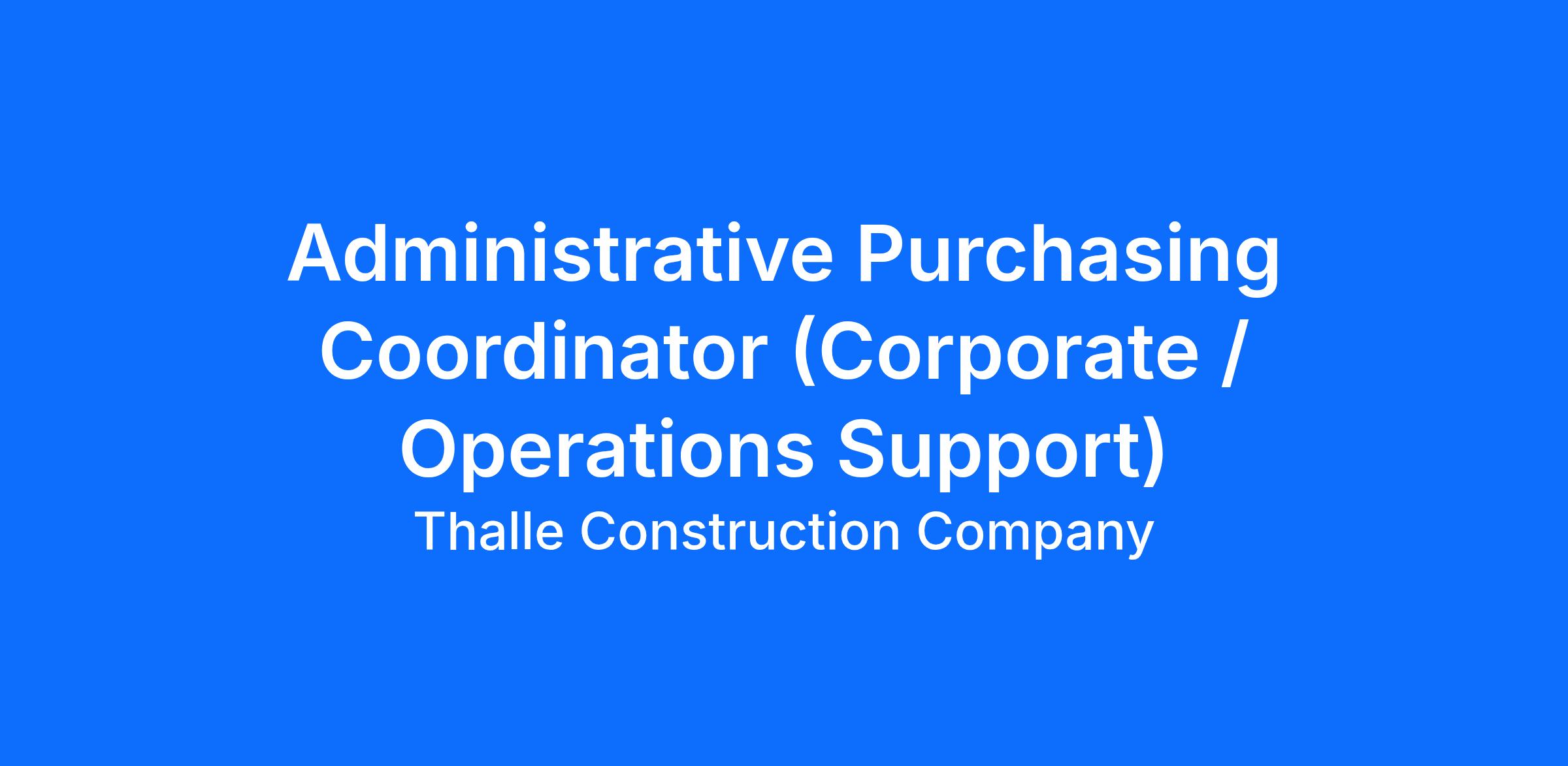 Job Title: Administrative Purchasing Coordinator (Corporate / Operations Support)