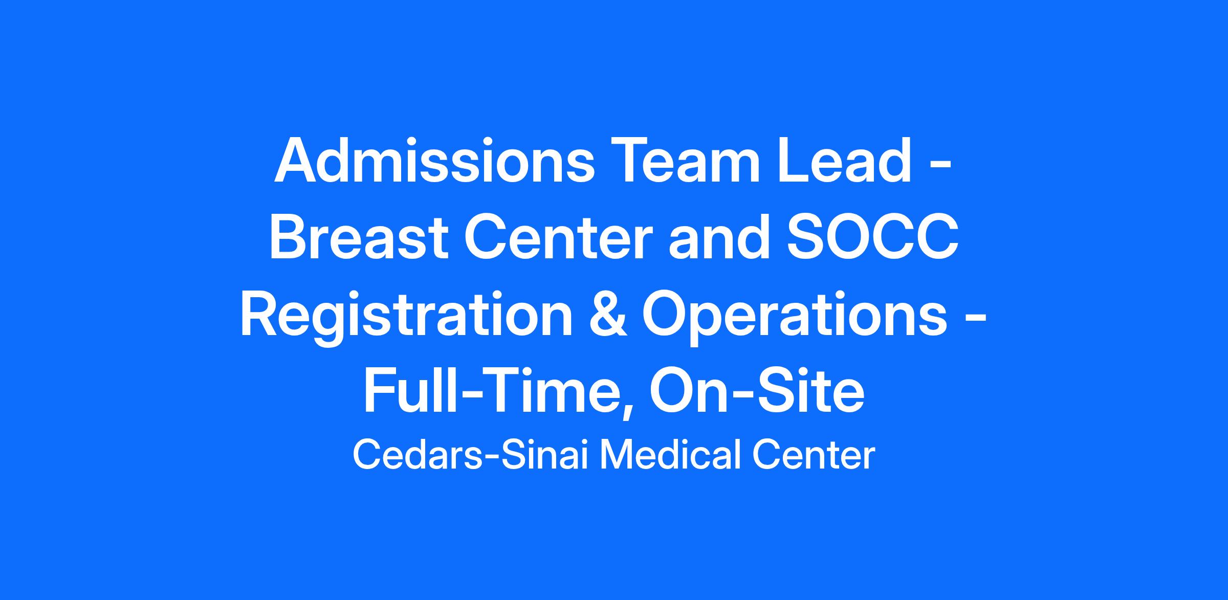 The Admission Team Lead monitors and coordinates the daily operations of assigned unit. Coordinates patient flow and adjusts work assignments to minimize patient wait times. Ensures registrations are worked according to established policies and procedures to meet data quality goals, comply with department procedures and policies, optimize point of service cash collections and cash flow, and provide efficient and appropriate utilization of resources. Acts as a resource for team members by assisting with coaching, training orientation of new hires, professional development, compliance with department and CSMC policies & procedures, performance feedback and evaluations, change management, and cost containment efforts. Responsible for the integrity of the registration process to positively impact the financial and customer service goals of the admissions department. Understands and supports the goals and objectives of the leadership team.