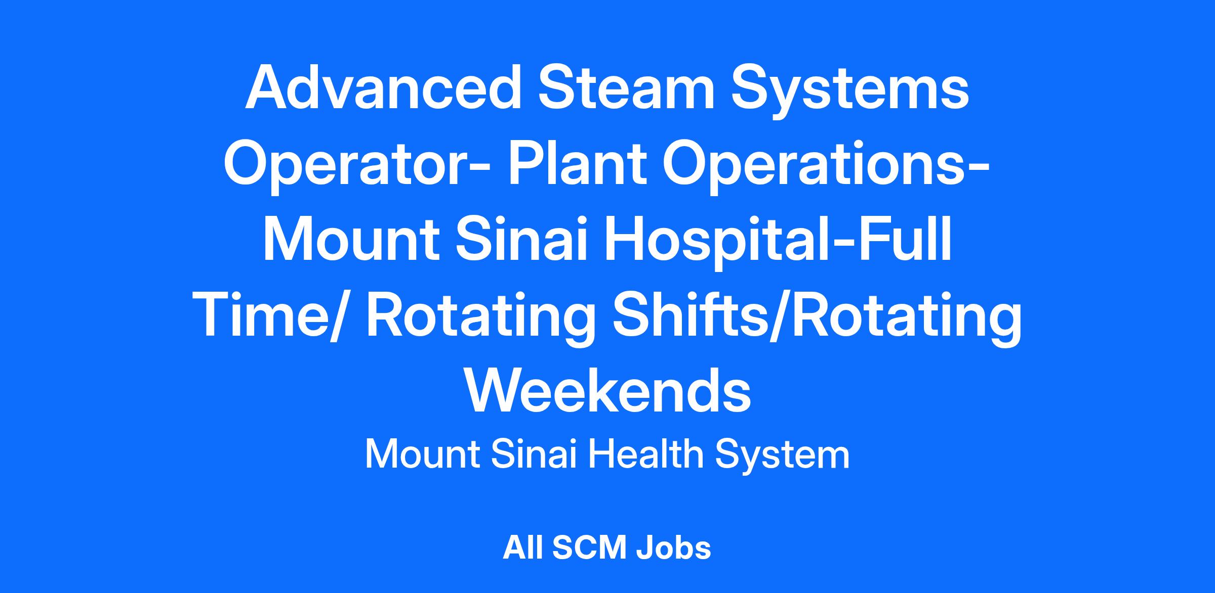 DescriptionAdvanced Steam Systems Operator-Mount Sinai Hospital