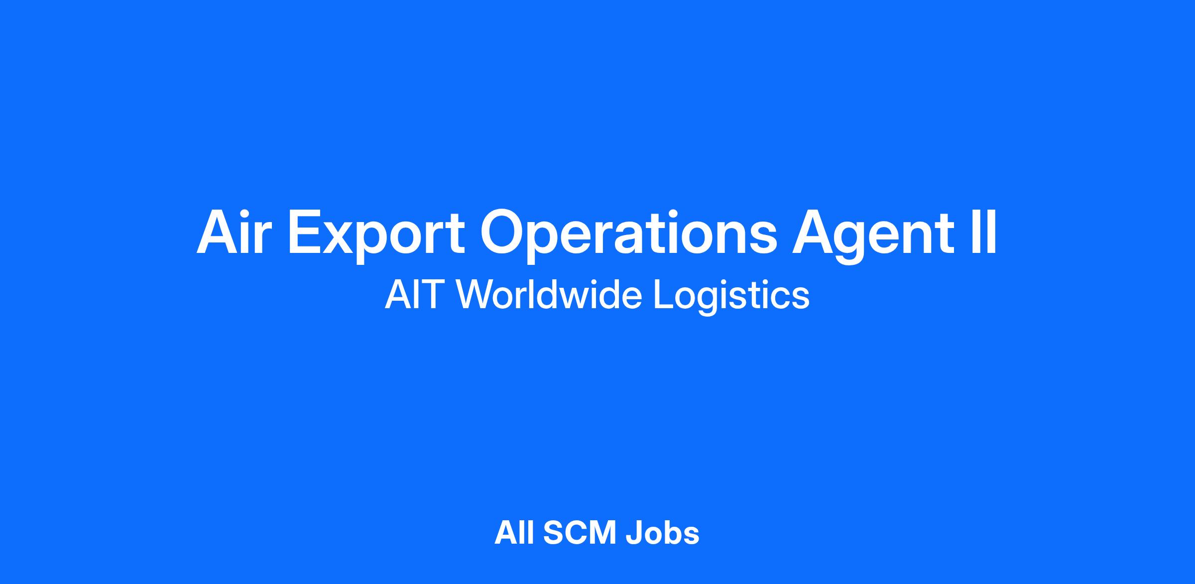 AIT Worldwide Logistics is seeking an Air Export Agent II that will coordinate the day-to-day export of international freight forwarding shipments into and out of the USA across all modes of international transportation based on customer requests. The Air Export Agent’s primary focus is providing a high-level of operational excellence and a world-class customer service experience to all customers.