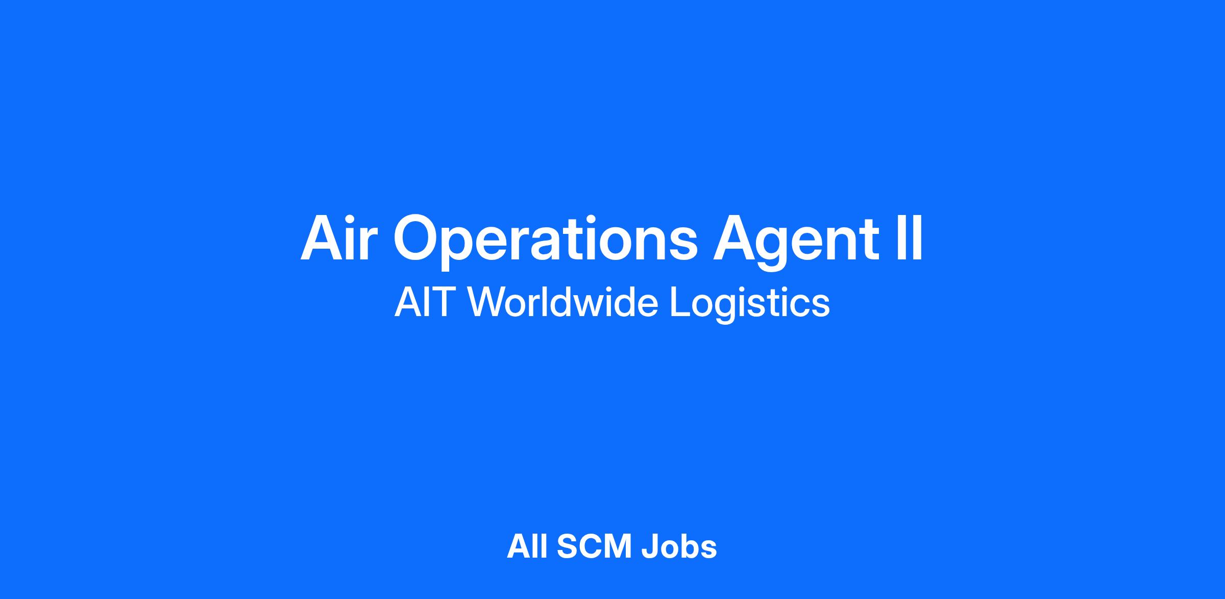 The Air Operations Agent II is responsible for coordinating the day-to-day air import and export of international freight forwarding shipments out of the USA of international transportation based upon customer requests.