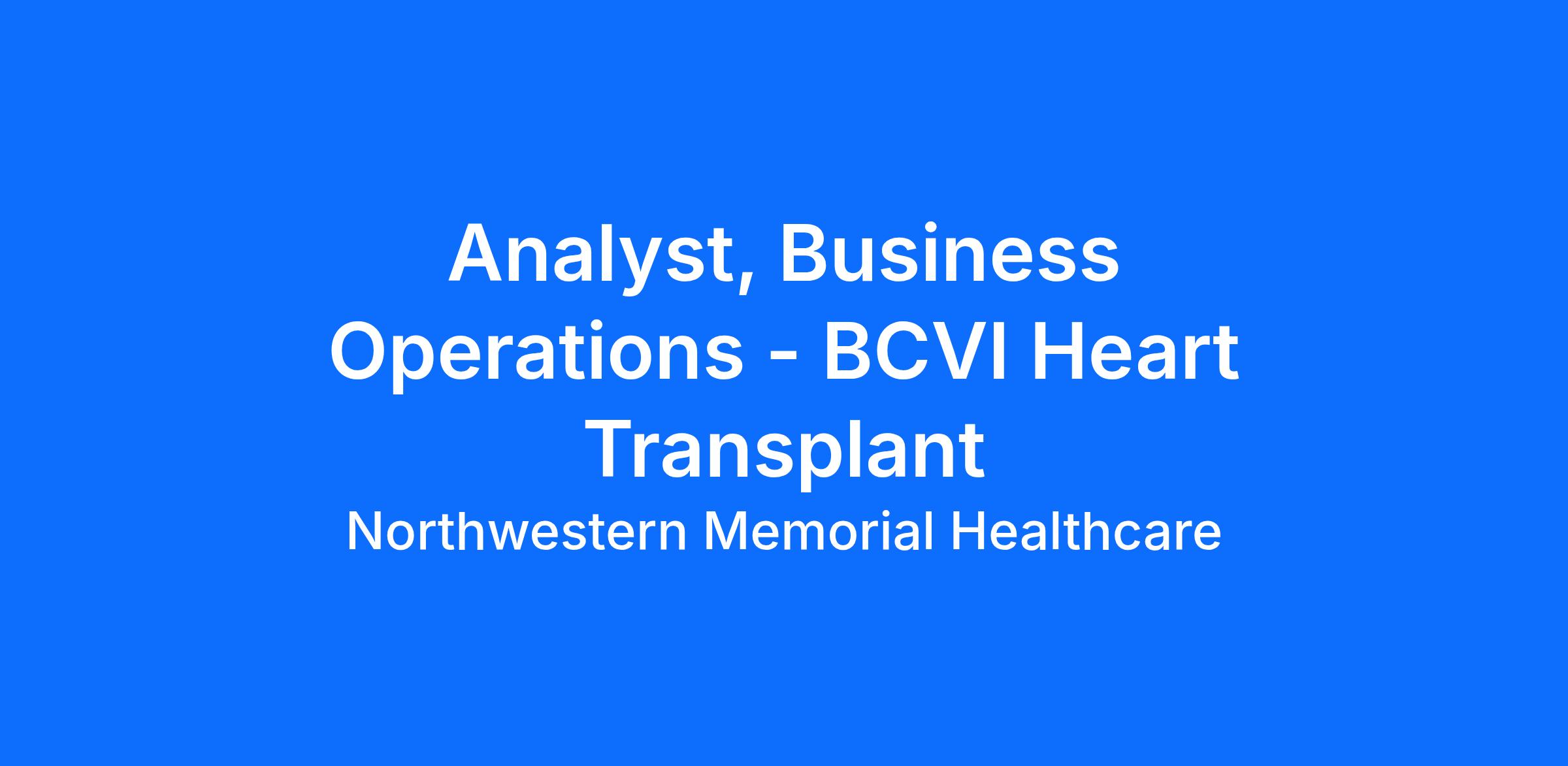 The Bluhm Cardiovascular Institute is seeking an Analyst to support transplant financial operations at the Academic Medical Center. This position will focus on financial reporting and analysis as well as standard business operations (including processing purchase orders and tracking invoices). Additional responsibilities may include ad hoc reporting related to medical group and service line operations and finances. Candidates should have familiarity with accounting/finance terminology and application and have strong Excel skills.