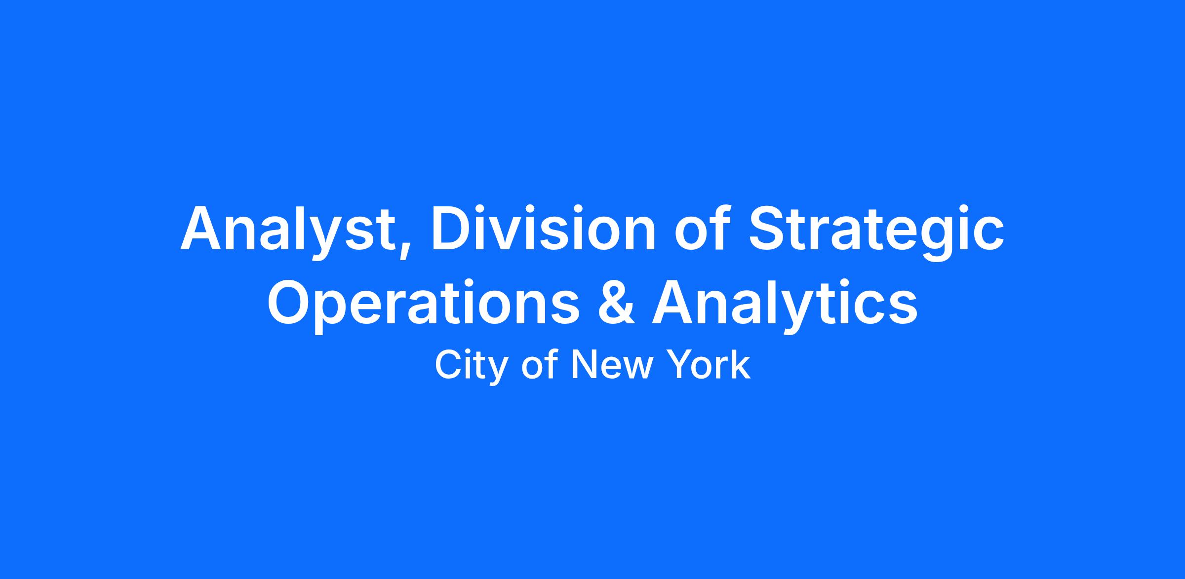 Your Impact: As an Analyst on the Data & Program Analytics (DPA) team within SOA, you will manage critical analytic projects and initiatives that advance HPD’s mission to provide safe, secure and affordable housing for New Yorkers. Your Role:
