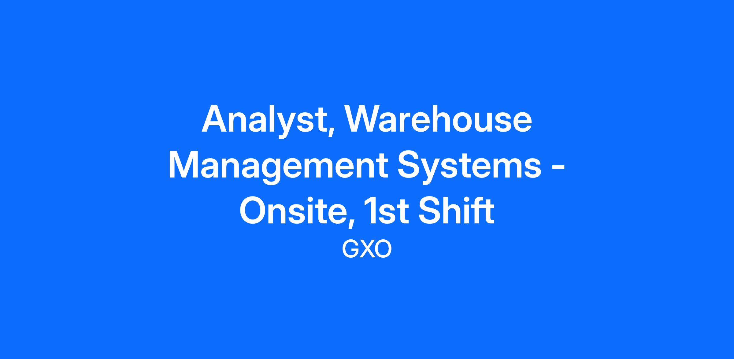 At GXO Logistics, we look for employees who like a challenge and can communicate effectively in all situations. As the Warehouse Management Systems (WMS) Analyst, you will serve as the liaison between Operations and IT, maintaining the relationship and ensuring clear communication. If you’re looking for a growth opportunity, join us at GXO.
