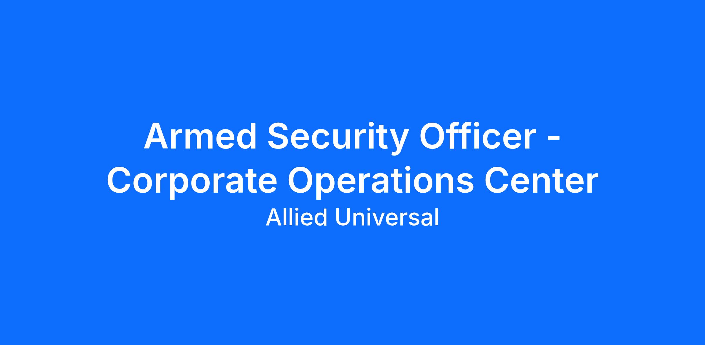 IMMEDIATE OPENINGS FOR ARMED SECURITY OFFICERS CORPORATE OPERATIONS CENTER