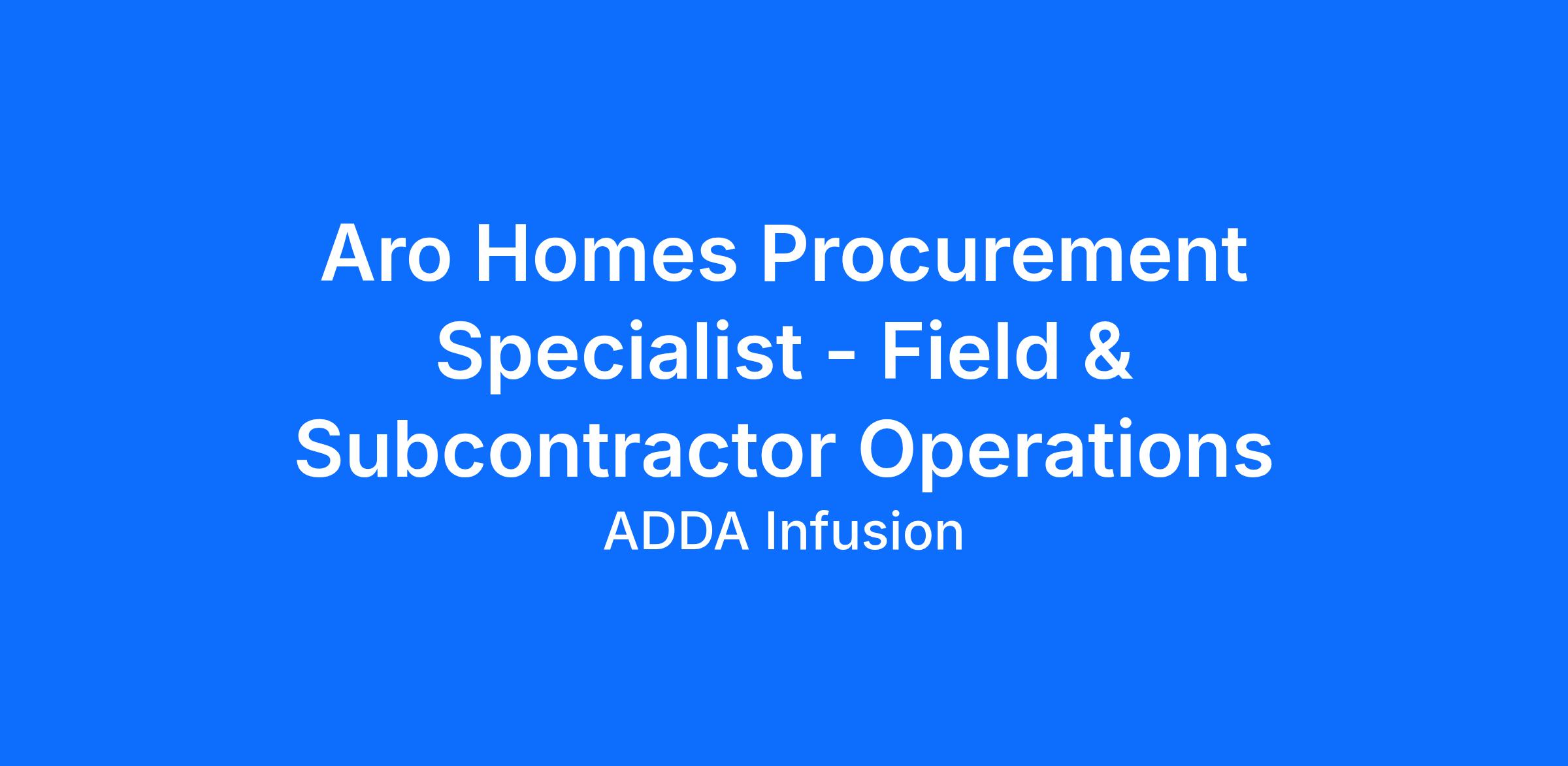 Aro Homes is seeking a Procurement Specialist – Field & Subcontractor Operations to support the procurement and execution of materials and subcontracted services required to complete homes at active construction sites.