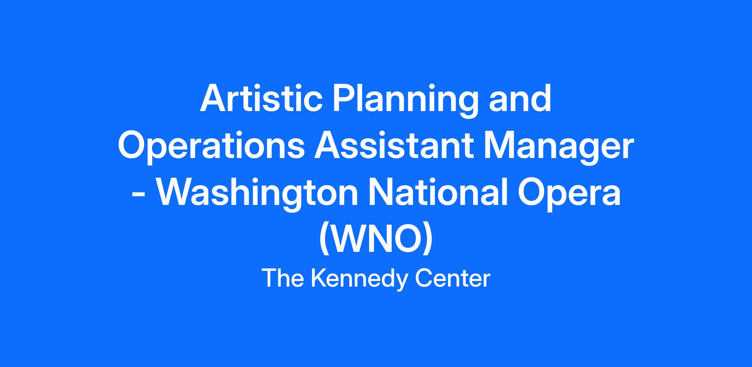 The Assistant Manager of Artistic Planning & Operations for the Washington National Opera (WNO) works closely with the Director of Artistic Planning & Operations and Senior Manager of Artistic Planning & Operations to carry out objectives for the artistic department.
