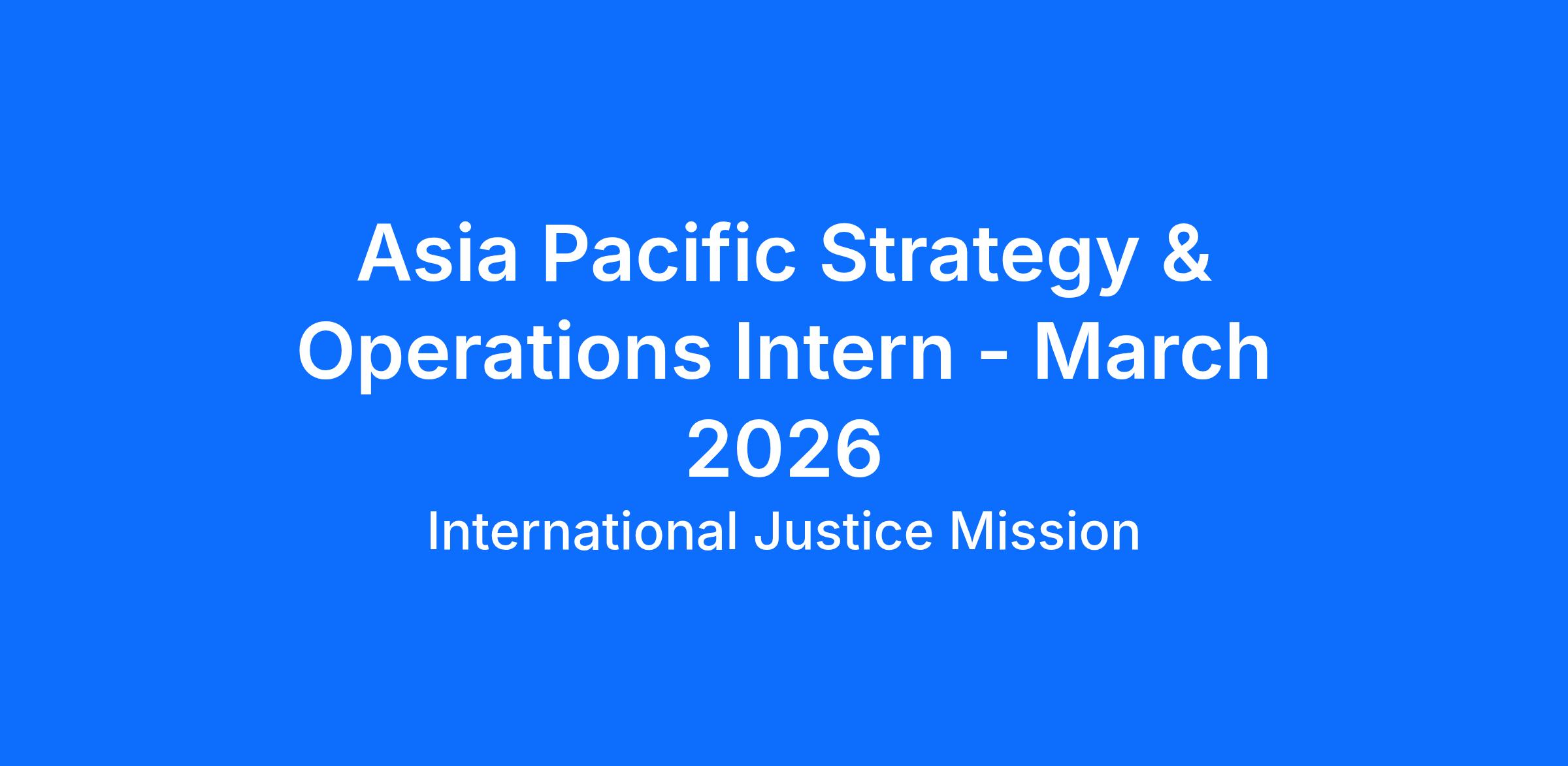 For over 25 years, IJM has pioneered the work to protect vulnerable people from violence. 9 out of 9 times in the last decade, IJM’s Justice System Strengthening Projects have reduced slavery and violence between 50 and 85% for very large populations of people in poverty. As we grow to expand our impact to protect 500 million people from violence, we are seeking an Asia Pacific Strategy & Operations Intern.