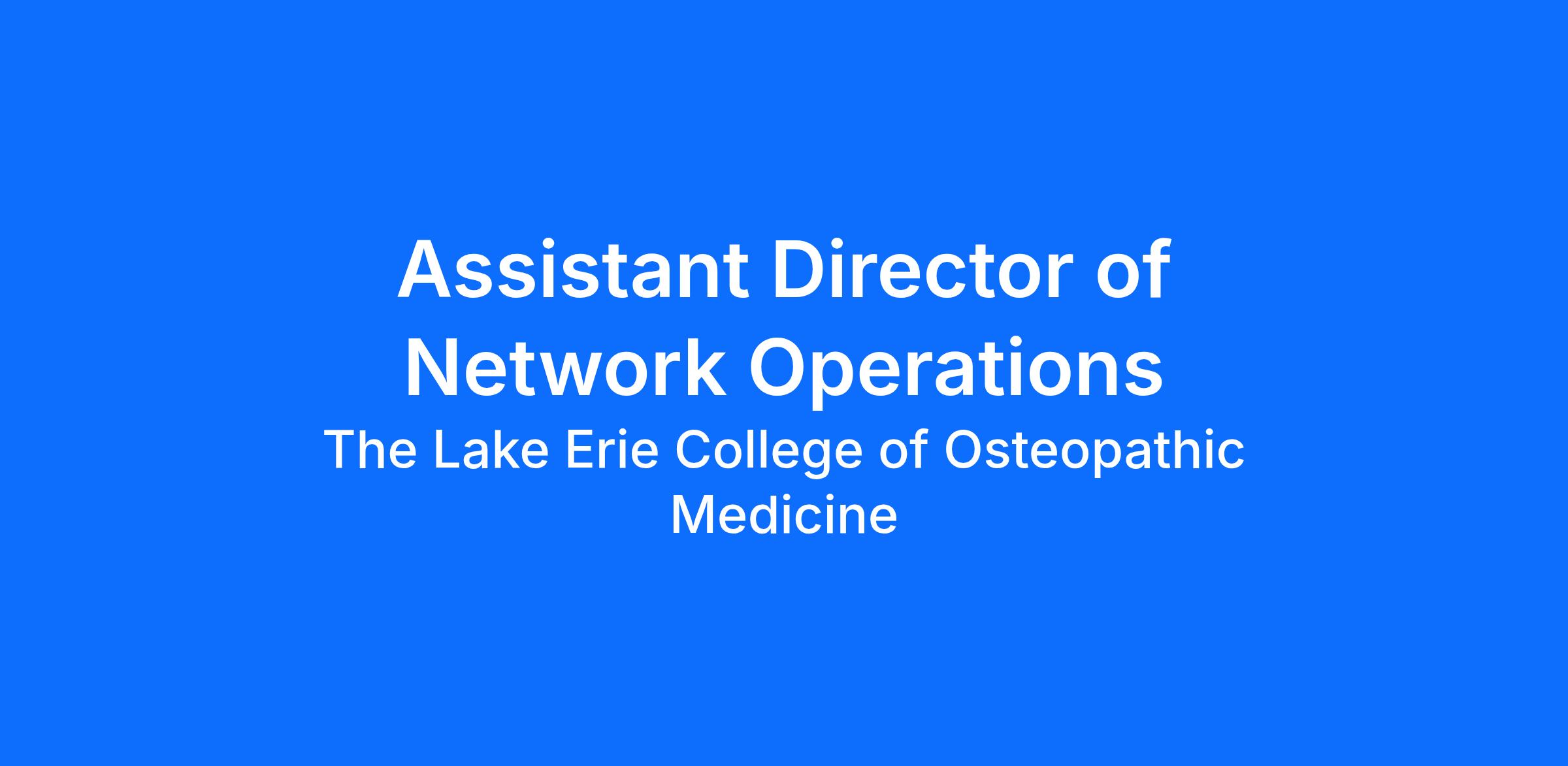 JOB SUMMARY: The Assistant Director of Network Operations reports to the Director of Network Operations and is responsible for providing excellent customer service and technical support to students, faculty, staff, and other visitors at the Institution. This position is responsible for the daily operation of the IT Help Desk including supervision of staff, procurement and deployment of equipment, assisting in problem solving, infrastructure support, and vendor management. This collaborative position will partner with IT functional areas on a variety of projects, utilizing a combination of technical expertise and customer service while ensuring technical administration, maintenance, programming, and repair of the PC, network, and A/V equipment in the classrooms and IT equipment in the faculty and staff offices. The Assistant Director will also take the lead on new instructional technology projects, and be responsible for hardware and software installation, problem diagnosis, and troubleshooting in the classrooms and offices.