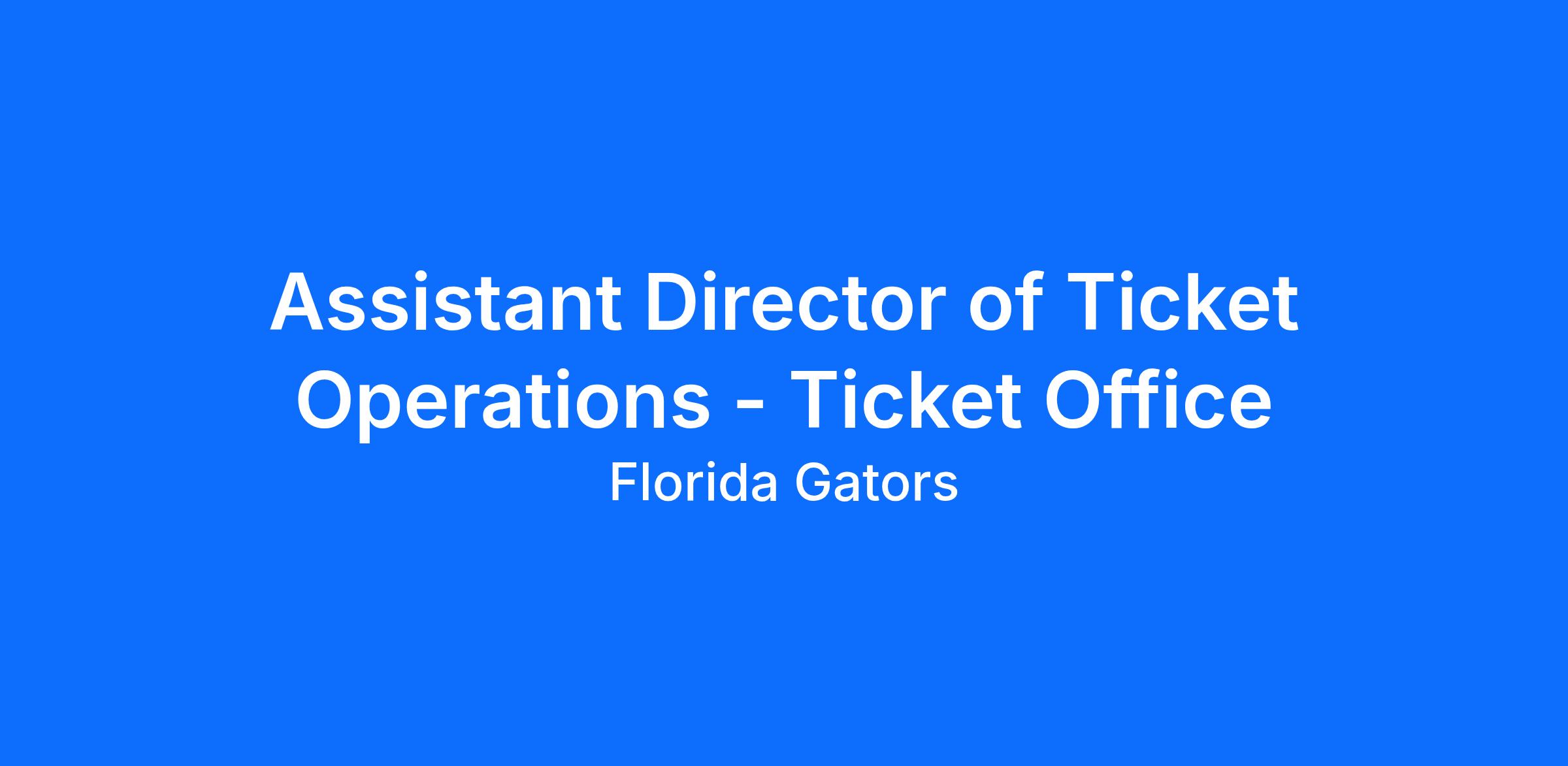 The University Athletic Association at the University of Florida is searching for an Assistant Director to maintain the Ticket Office computer ticketing systems and trains employees on the functionality of the system. Handles building and creation of all manifests in Archtics and creates assigned sport(s) events on Ticketmaster Host system. Is responsible for the oversight of multiple sports/ ticket operations and may assist other ticket office employees with the ticket operations for their assigned sport(s). Responsible for recruiting, hiring, training and managing hourly OPS staff. Assists in the coordination of day-to-day operations within the Ticket Office. This position requires the incumbent to have strong communication and customer service skills; be organized, detail-oriented, and self-motivated; be an independent thinker with strong analytics skills; multitask effectively; engage effectively with others of diverse cultures or backgrounds; and work a non-standard work week which may include evenings, weekends, and holidays. This posting will remain open until a qualified candidate is chosen. |