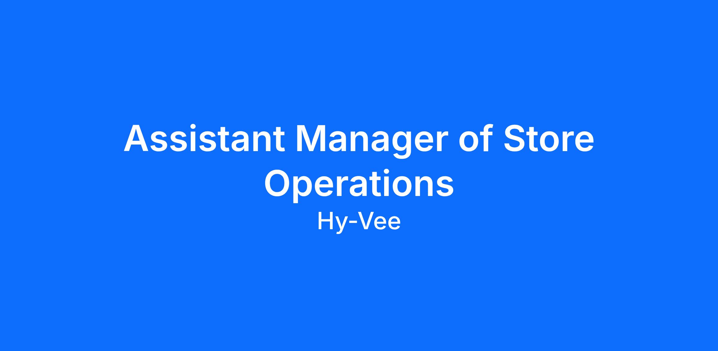 Job Title: Assistant Manager Store Operations; Assistant Manager Perishables; Assistant Manager Health Wellness Home