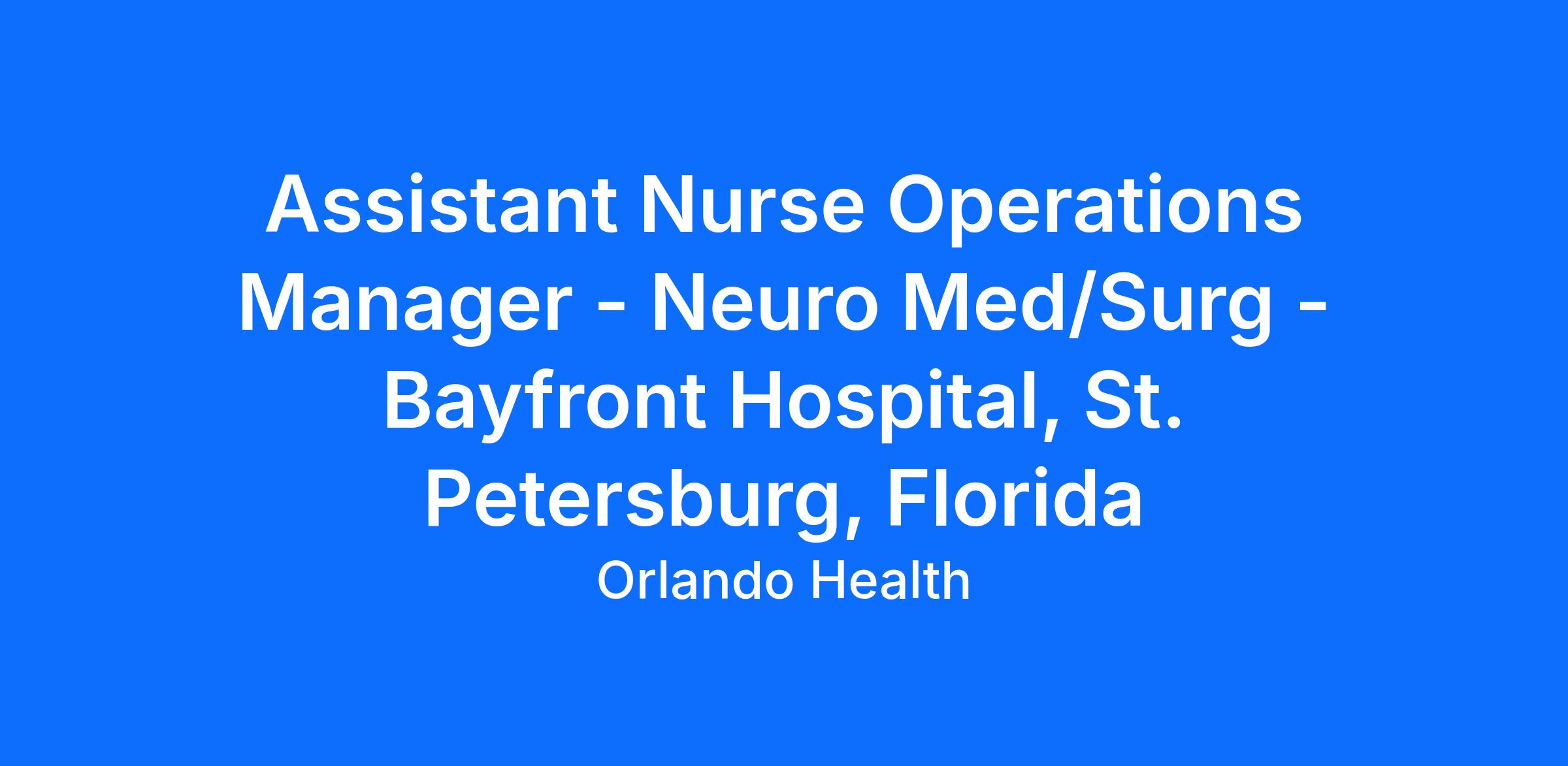 Orlando Health Bayfront Hospital is part of the Orlando Health system of care, which includes award-winning hospitals and ERs, specialty institutes, urgent care centers, primary care practices and outpatient facilities that span Florida’s east to west coasts, Central Alabama and Puerto Rico. Collectively, our dedicated team members honor our over 100-year legacy by providing professional and compassionate care to the patients, families and communities we serve.