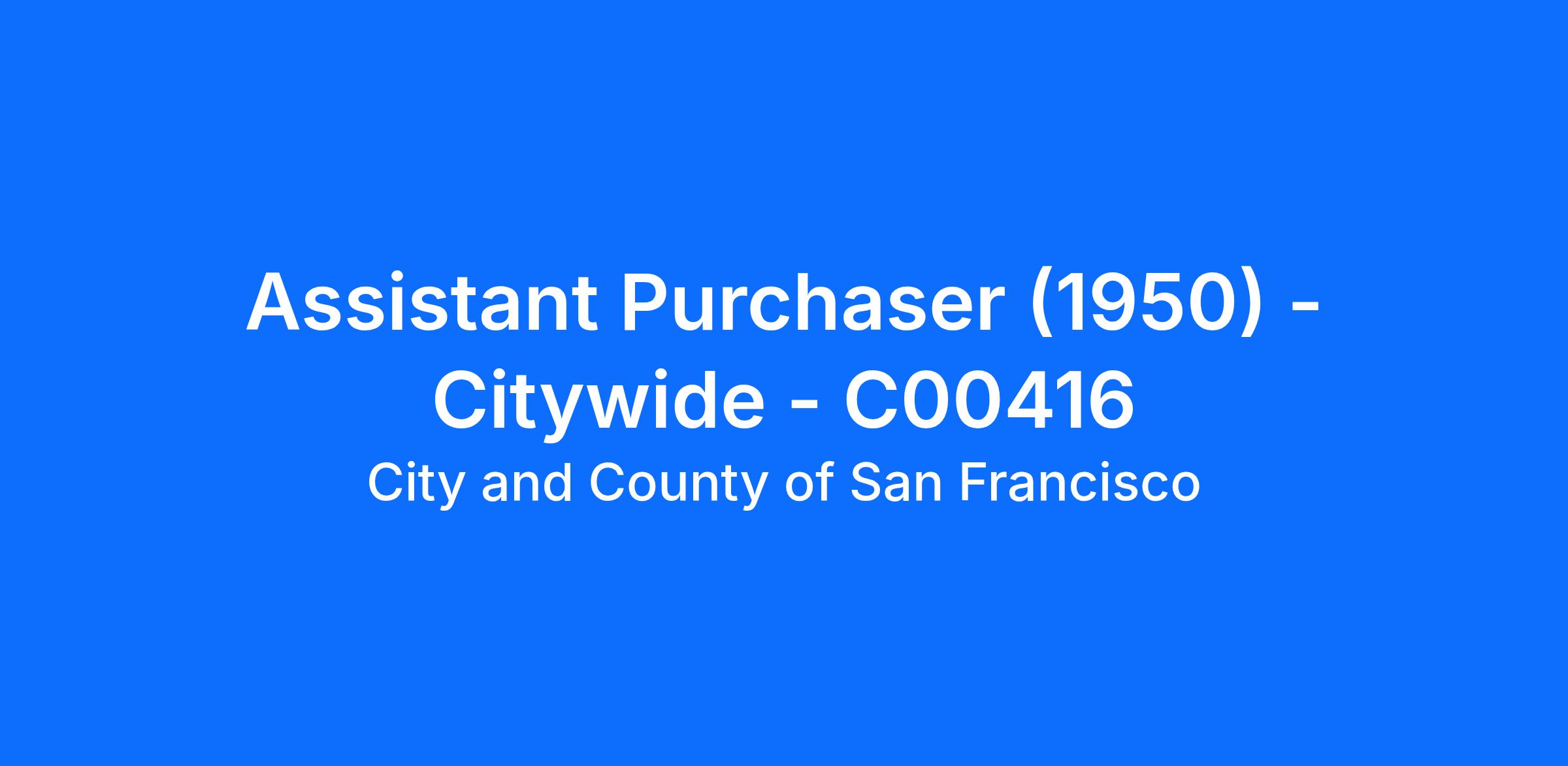 The City and County of San Francisco is looking to bring on board multiple Assistant Purchasers to perform professional duties in connection with the procurement of a variety of materials, supplies and equipment in accordance with the San Francisco Controller’s Office administrative codes. We are looking for candidates with a passion for public service.