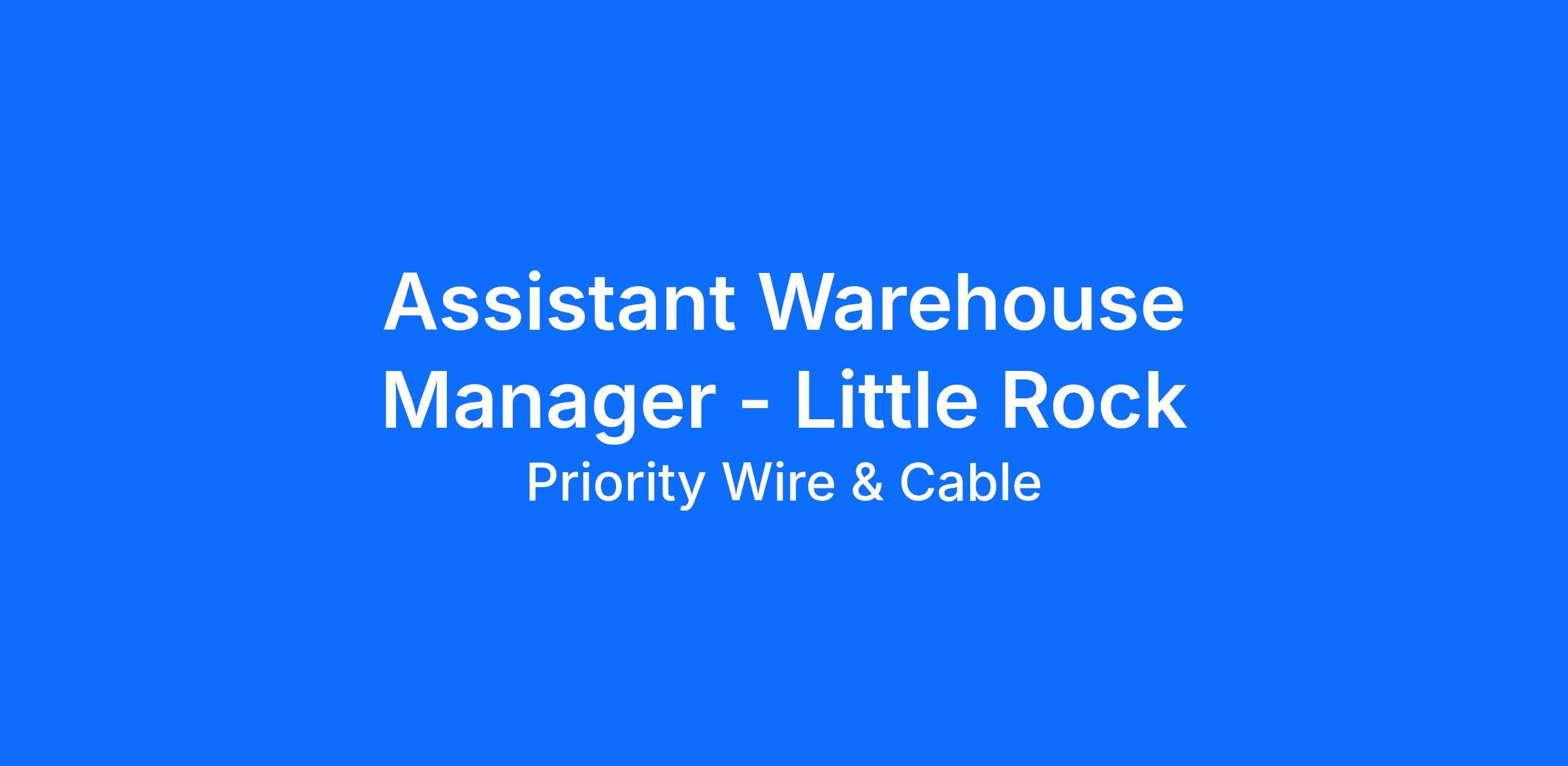 Assistant Warehouse Manager - Little Rock