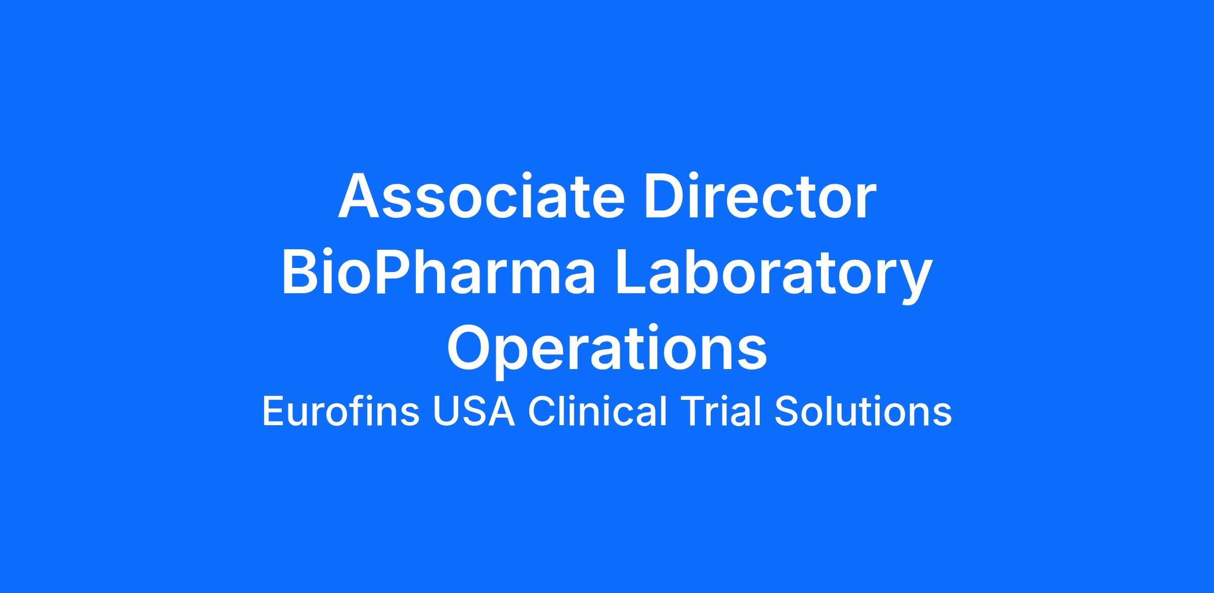 The Associate Director BioPharma Laboratory Operations provides strategic and operational leadership ensuring world‑class execution across quality, compliance, and scientific delivery. This role is critical to advancing our BioPharma Services business through strong regulatory stewardship, operational excellence, and the successful integration of new technologies.