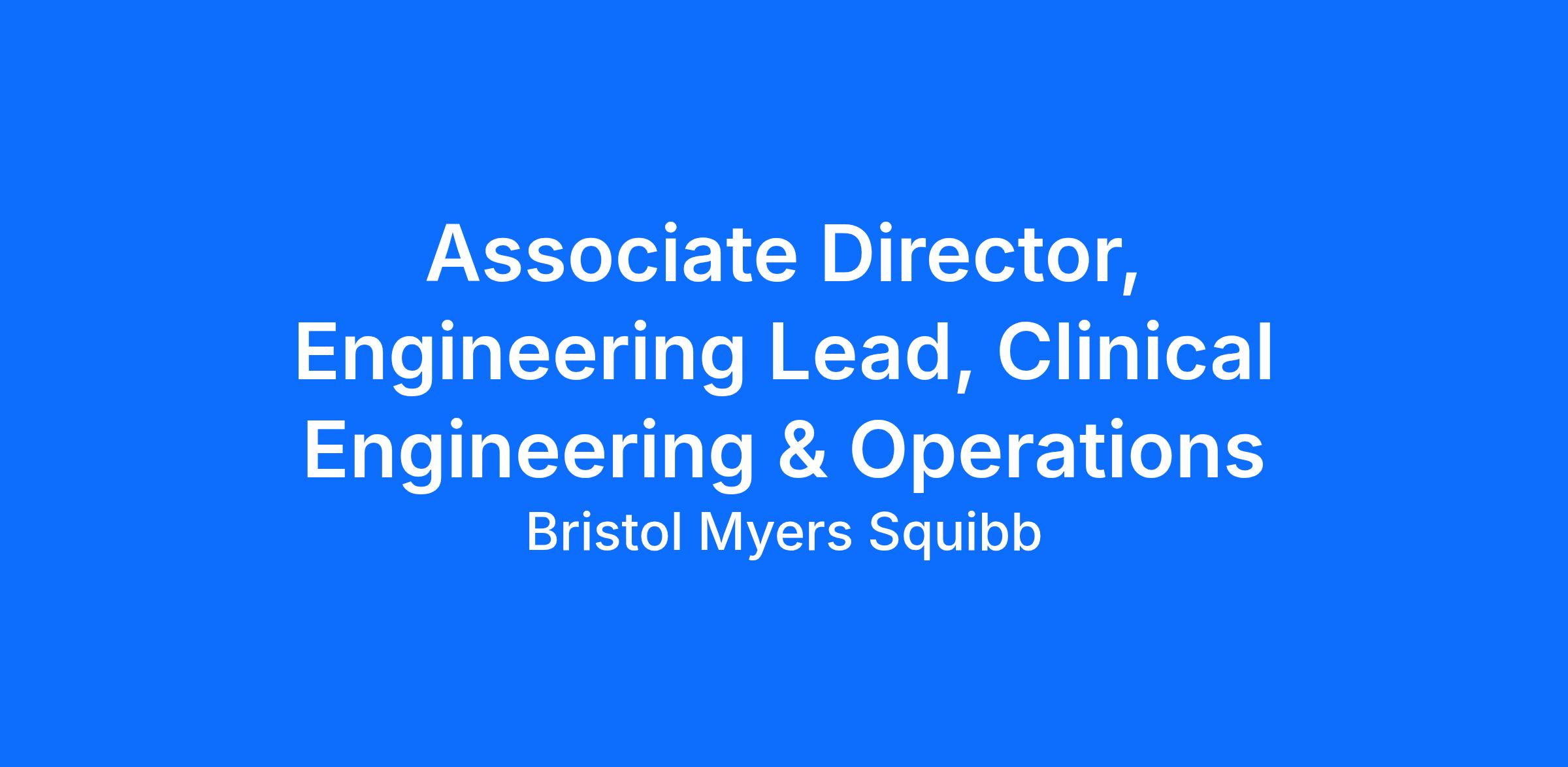Associate Director, Engineering Lead, Clinical Engineering & Operations