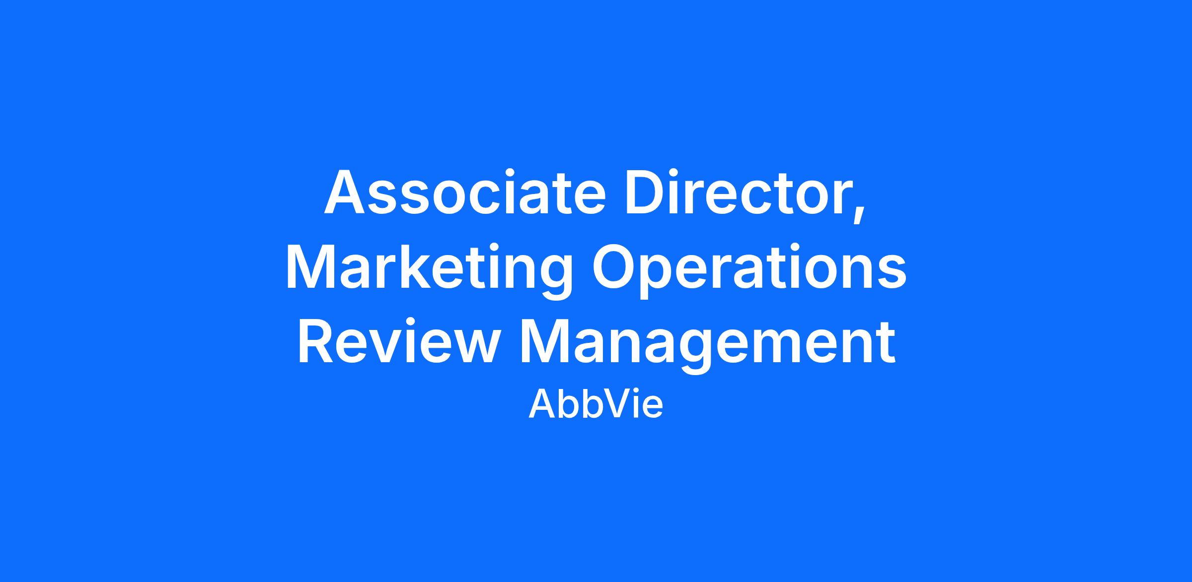 The Associate Director, Marketing Operations Review Management position leads a team of people leaders and individual contributors that manage the US Material Review Process (MRP) to ensure effective, efficient and compliant delivery of promotional and non-promotional communications, tools and programs to all stakeholders.
