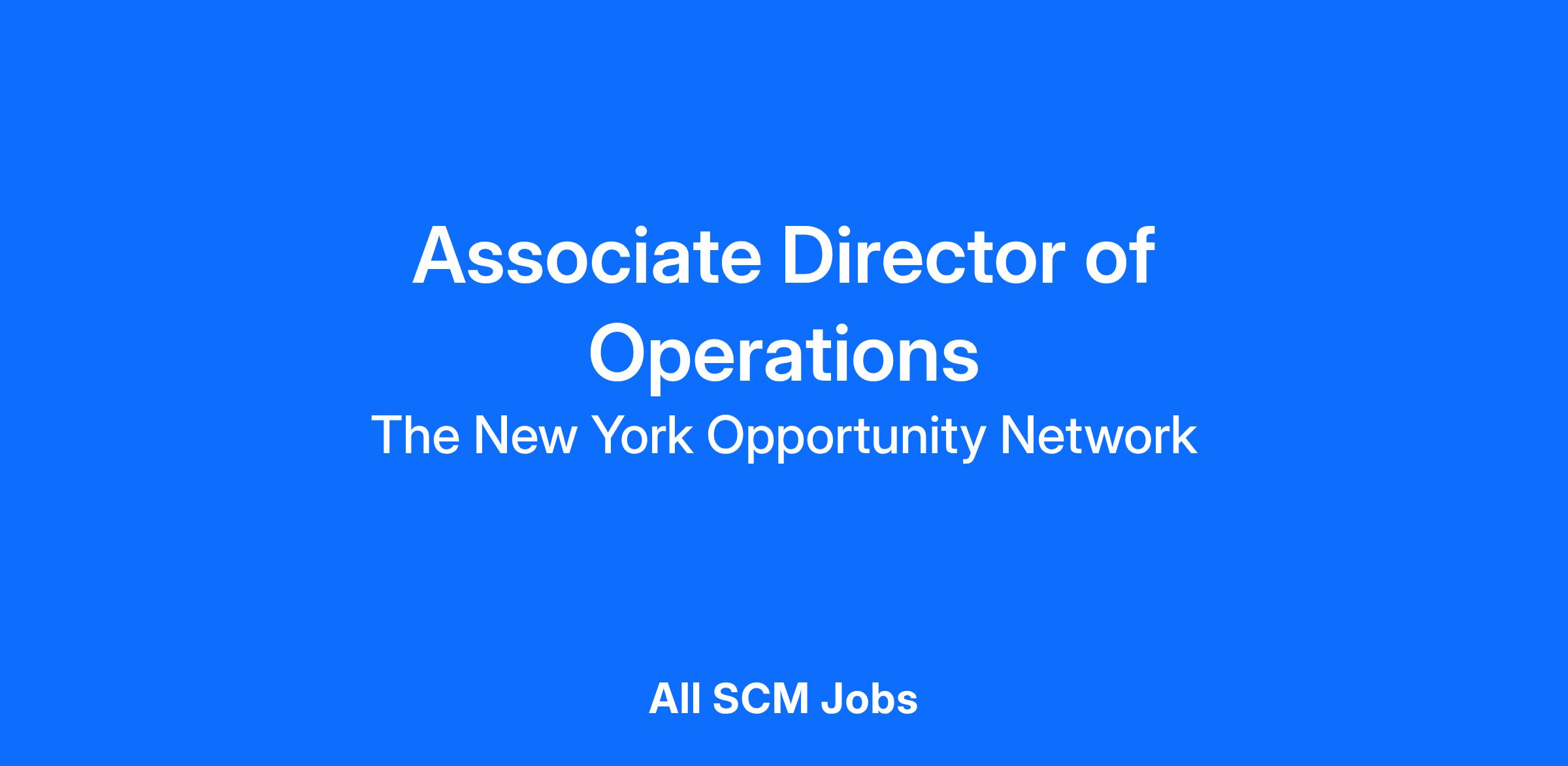 The Associate Director will be a critical partner to the COO in strategic decision-making and operations as OppNet continues to enhance its quality programming and build capacity. The Associate Director of Operations will directly supervise the Operations Manager and the Operations Coordinator.