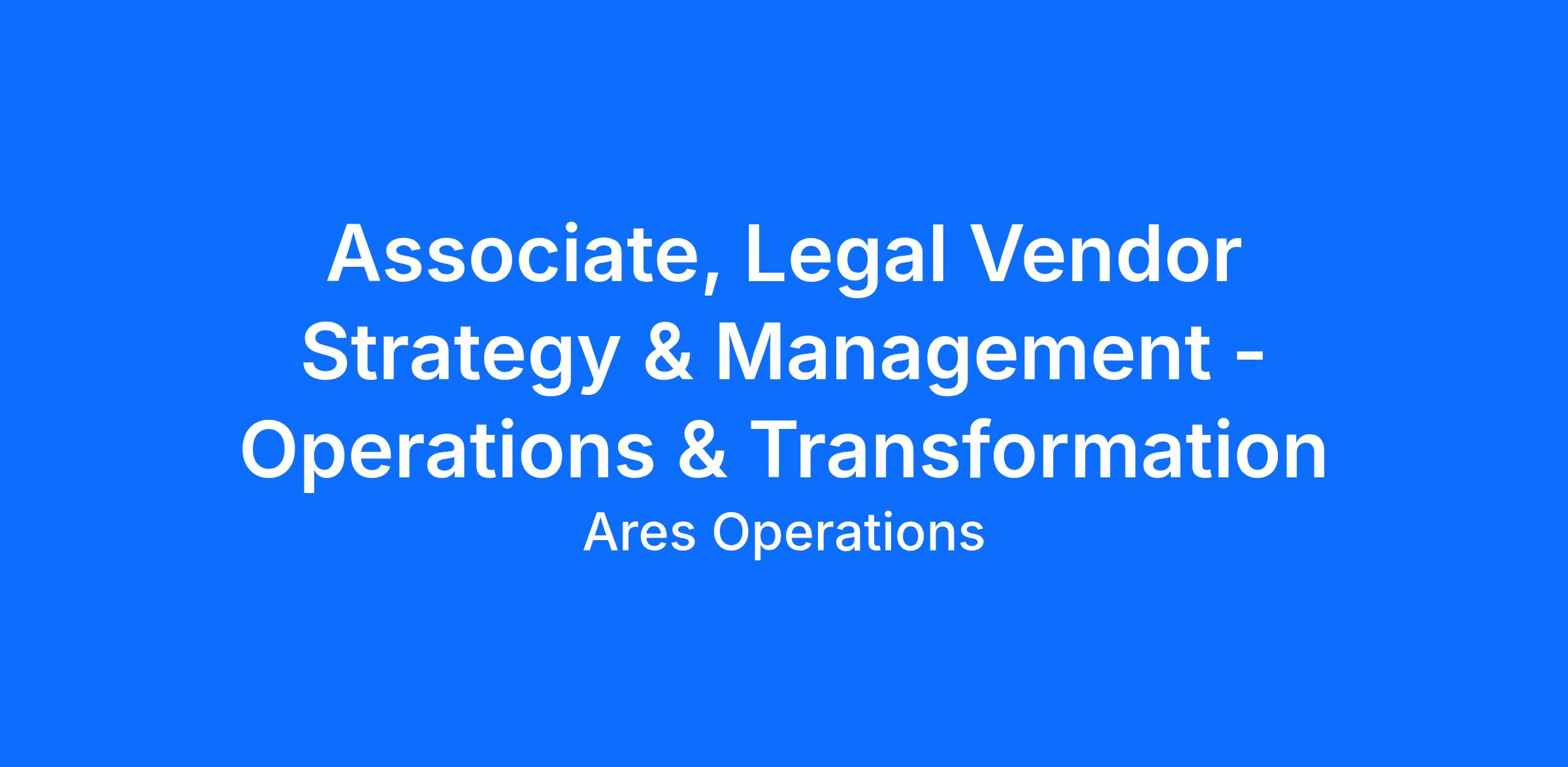 Ares is seeking an Associate, Legal Vendor Strategy & Management – Operations & Transformation to help build the operational infrastructure for how the Legal department engages outside counsel and other legal service providers.