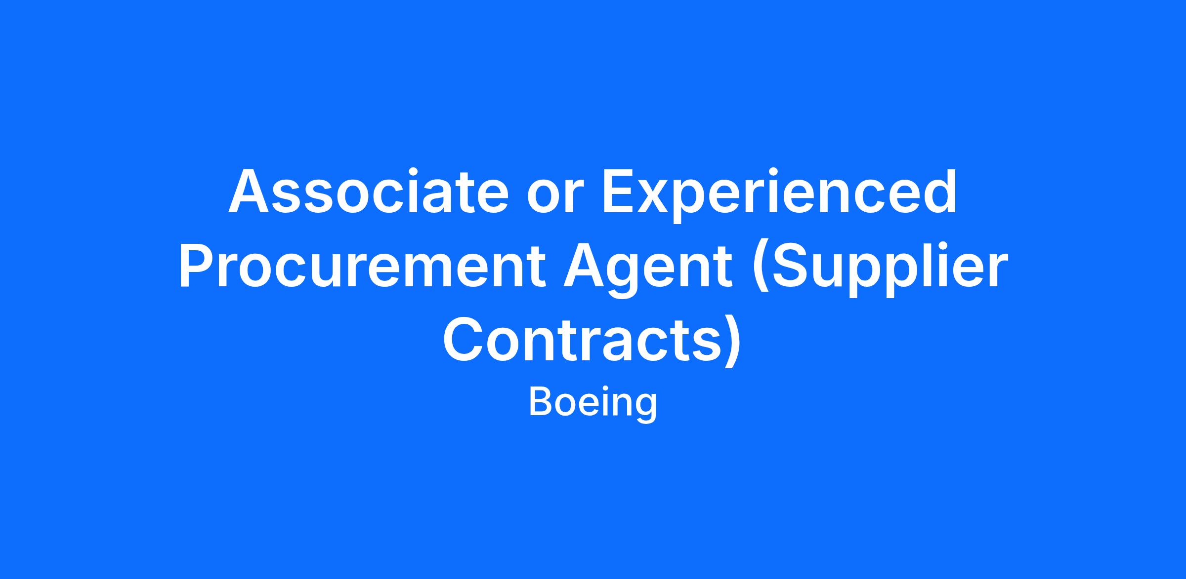 The Boeing CompanyThe Boeing Global Services(BGS) Supplier Management team is seeking either an Associate or Experienced Procurement Agent (Level 2 or Level 3) to support our site in Dallas, TX